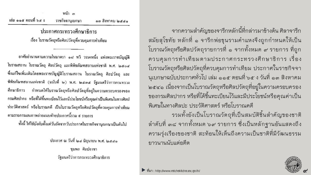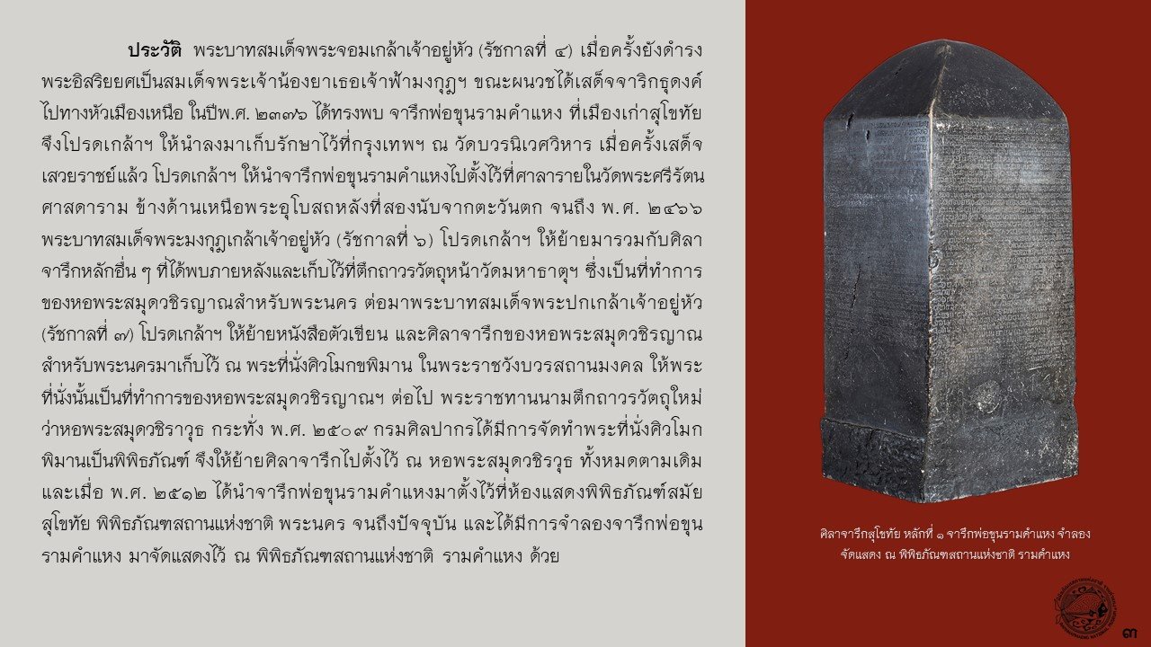ศิลาจารึกสุโขทัย หลักที่ 1 จารึกพ่อขุนรามคำแหง
