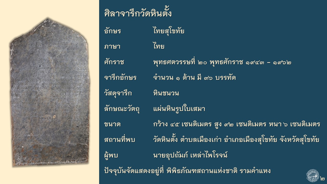 ศิลาจารึกสุโขทัย จารึกวัดหินตั้ง