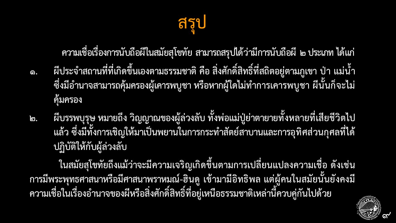 ความเชื่อเรื่องการนับถือผีในสมัยสุโขทัย