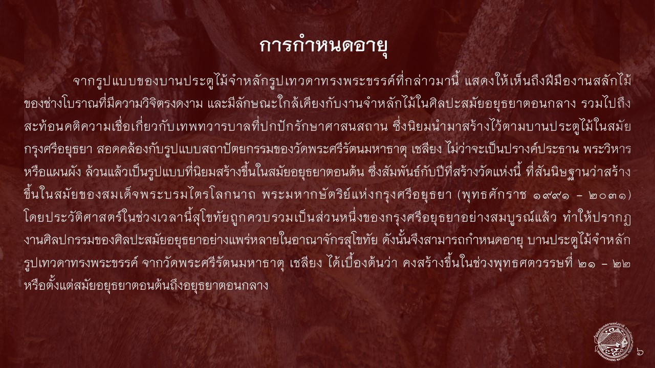 บานประตูไม้จำหลัก วัดพระศรีรัตนมหาธาตุ เชลียง