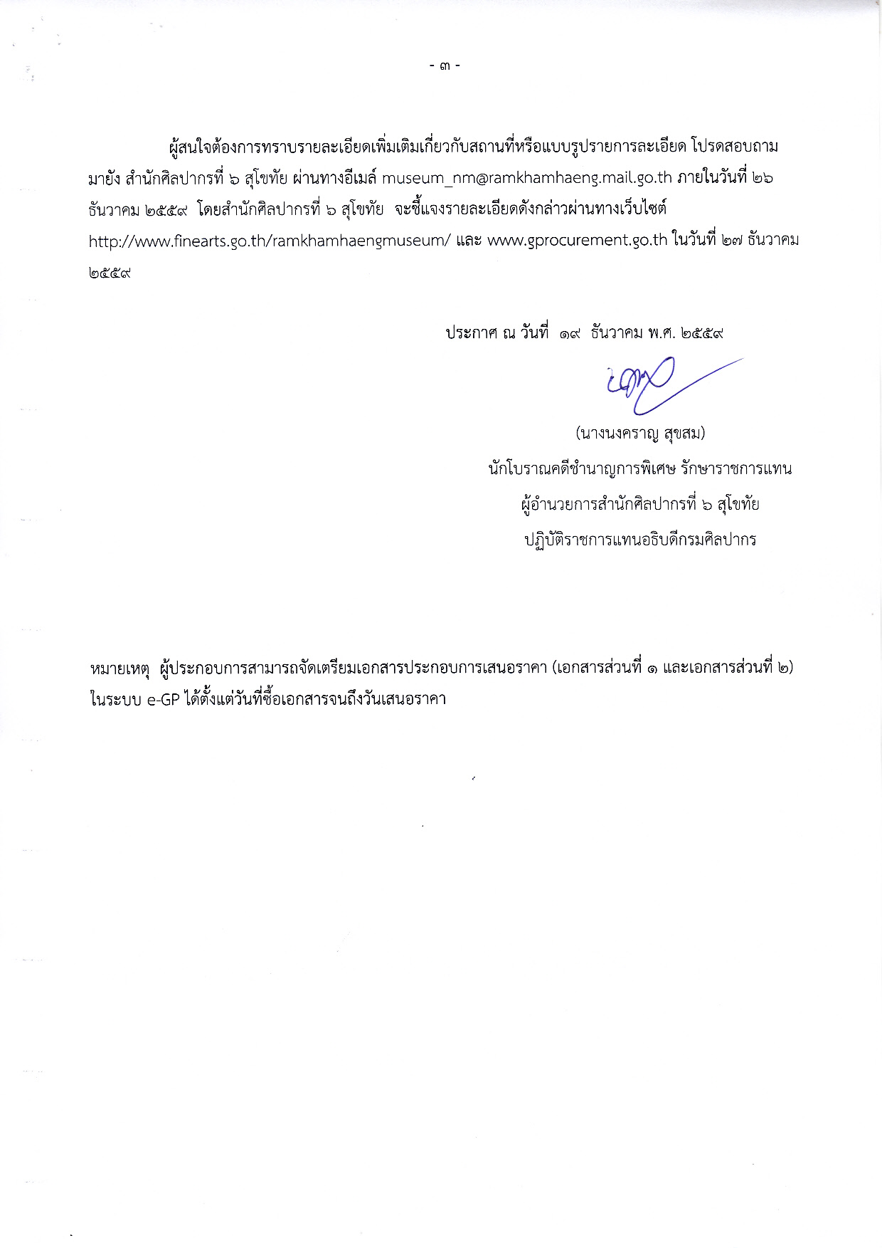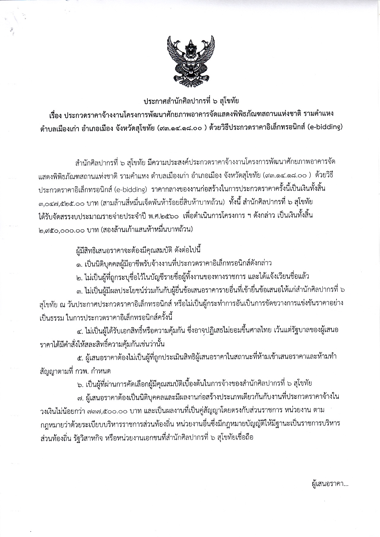 ประกวดราคาจ้างงานโครงการพัฒนาศักยภาพอาคารจัดแสดง พช.รามคำแหง