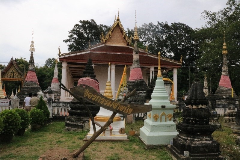 เจดีย์ ลักษณะเป็นเจดีย์ก่ออิฐถือปูน รายรอบอุโบสถจำนวน ๗ องค์ ลักษณะเป็น