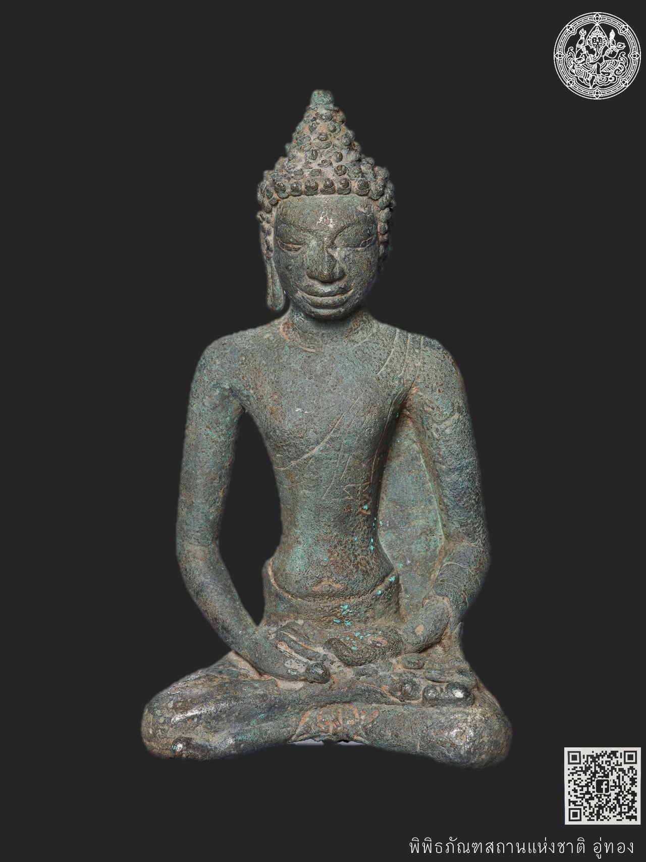 พระพุทธรูปปางสมาธิ พบจากโบราณสถานพุหางนาคหมายเลข ๒ ตำบลอู่ทอง อำเภออู่ทอง จังหวัดสุพรรณบุรี จัดแสดง ณ ห้องอู่ทองศรีทวารวดี พิพิธภัณฑสถานแห่งชาติ อู่ทอง