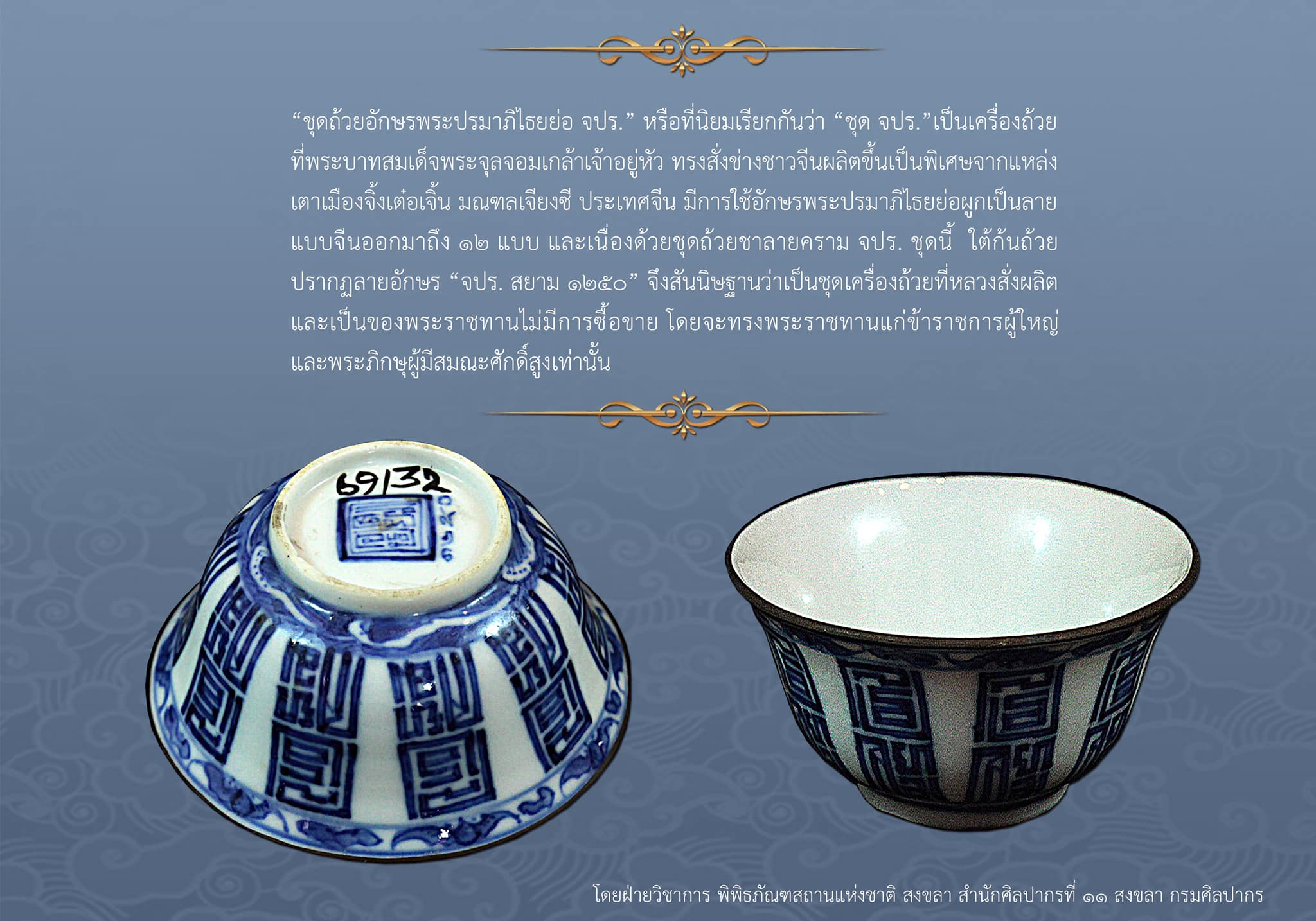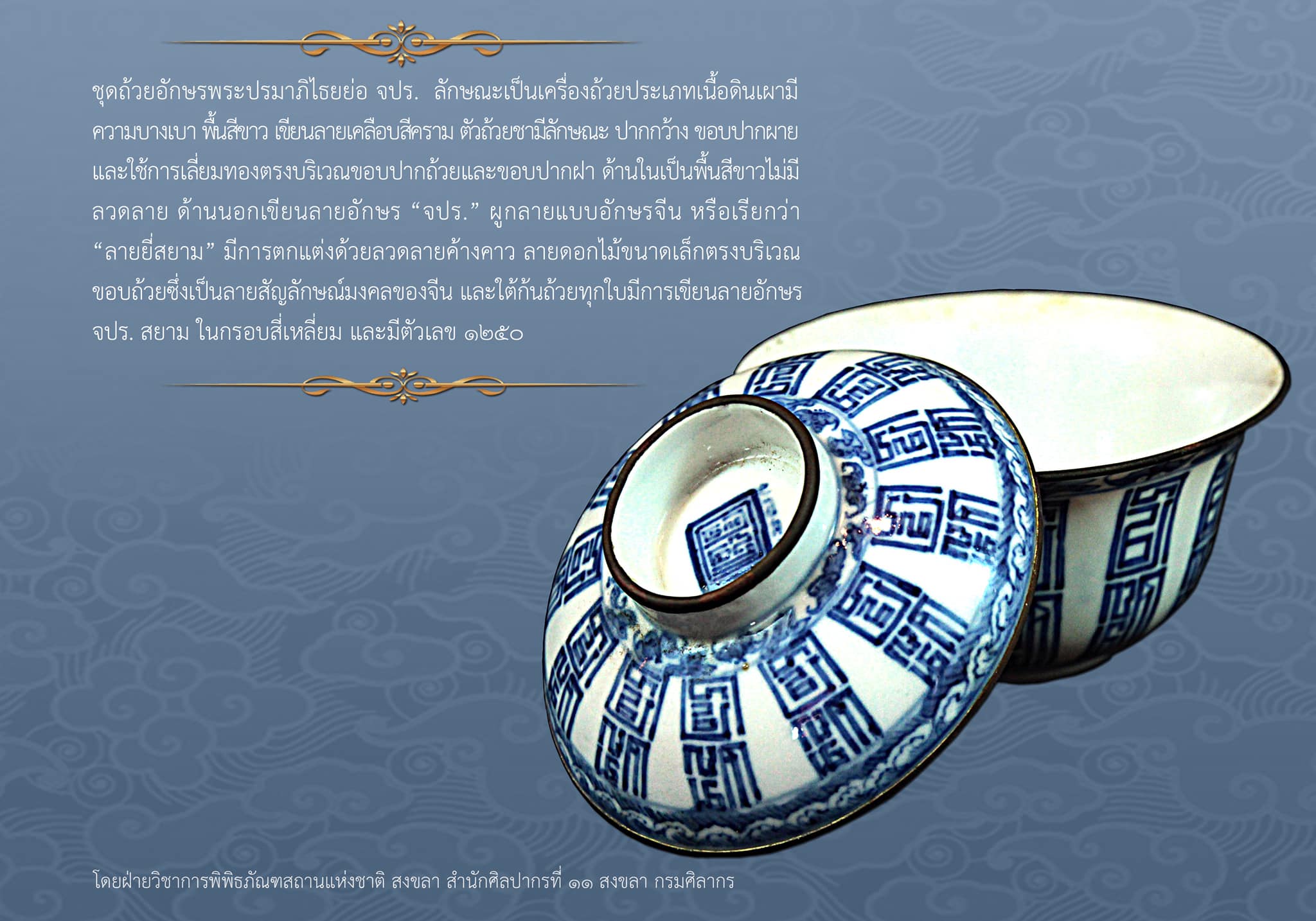 “ชวนชม” โบราณวัตถุชิ้นเด่นของพิพิธภัณฑสถานแห่งชาติ สงขลา วันนี้ขอนำเสนอ “ชุดถ้วยอักษรพระปรมาภิไธยย่อ จปร.”