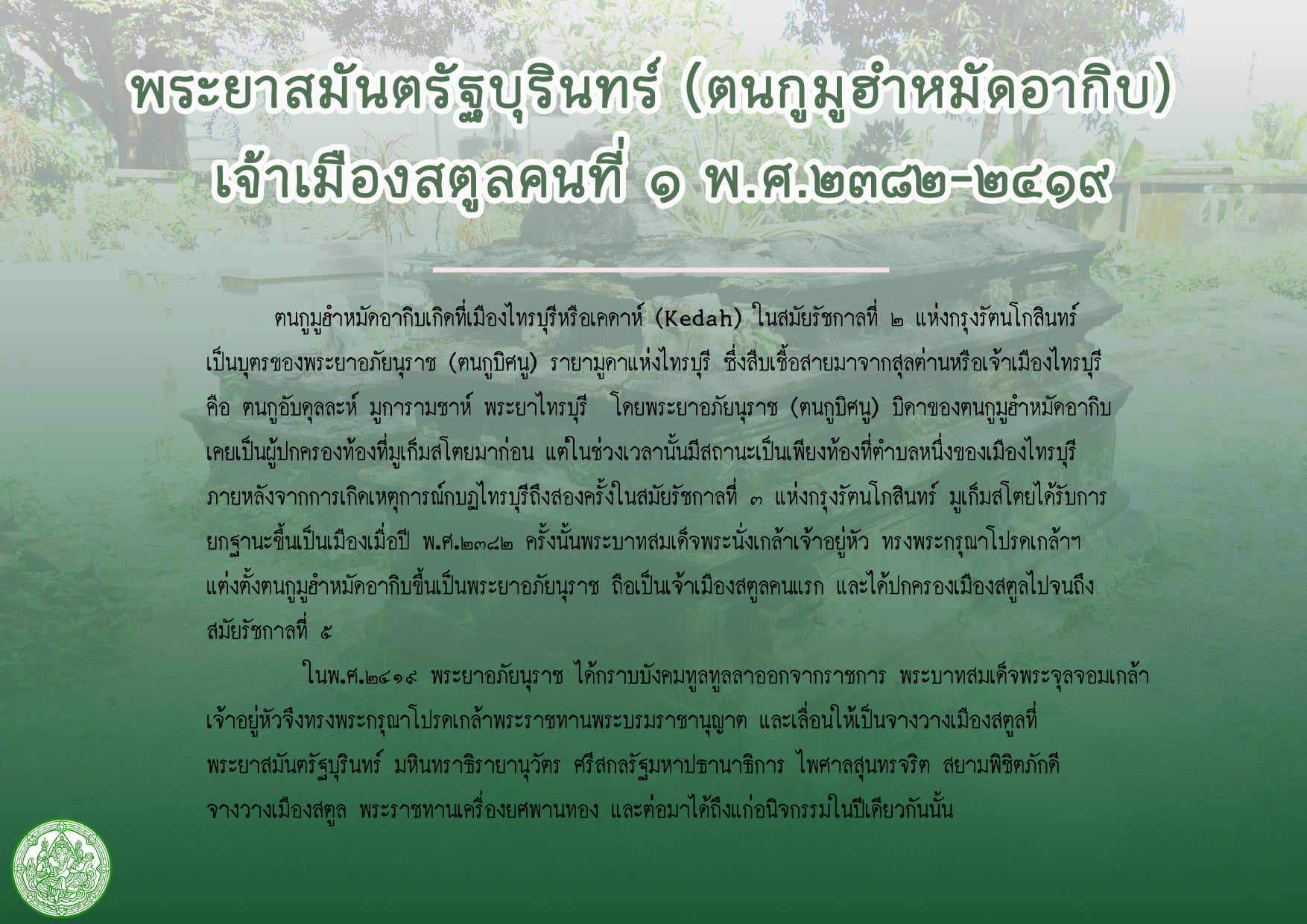 พระยาสมันตรัฐบุรินทร์ (ตนกูมูฮำหมัดอากิบ) เมืองสตูล พ.ศ.๒๓๘๒-๒๔๑๙
