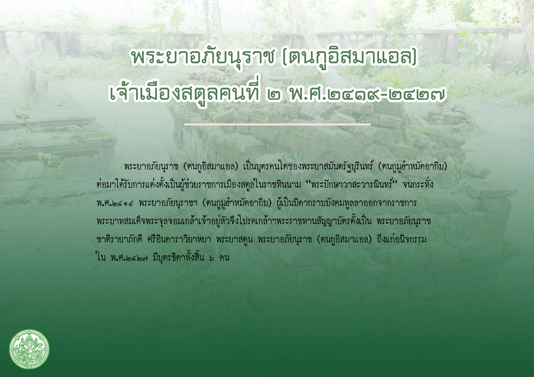 พระยาอภัยนุราช (ตนกูอิสมาแอล) เมืองสตูล พ.ศ.๒๔๑๙-๒๔๒๗