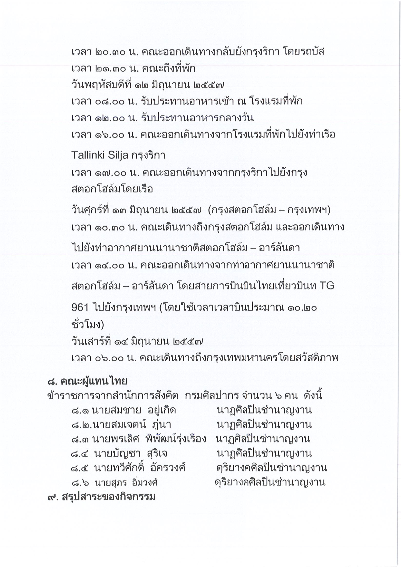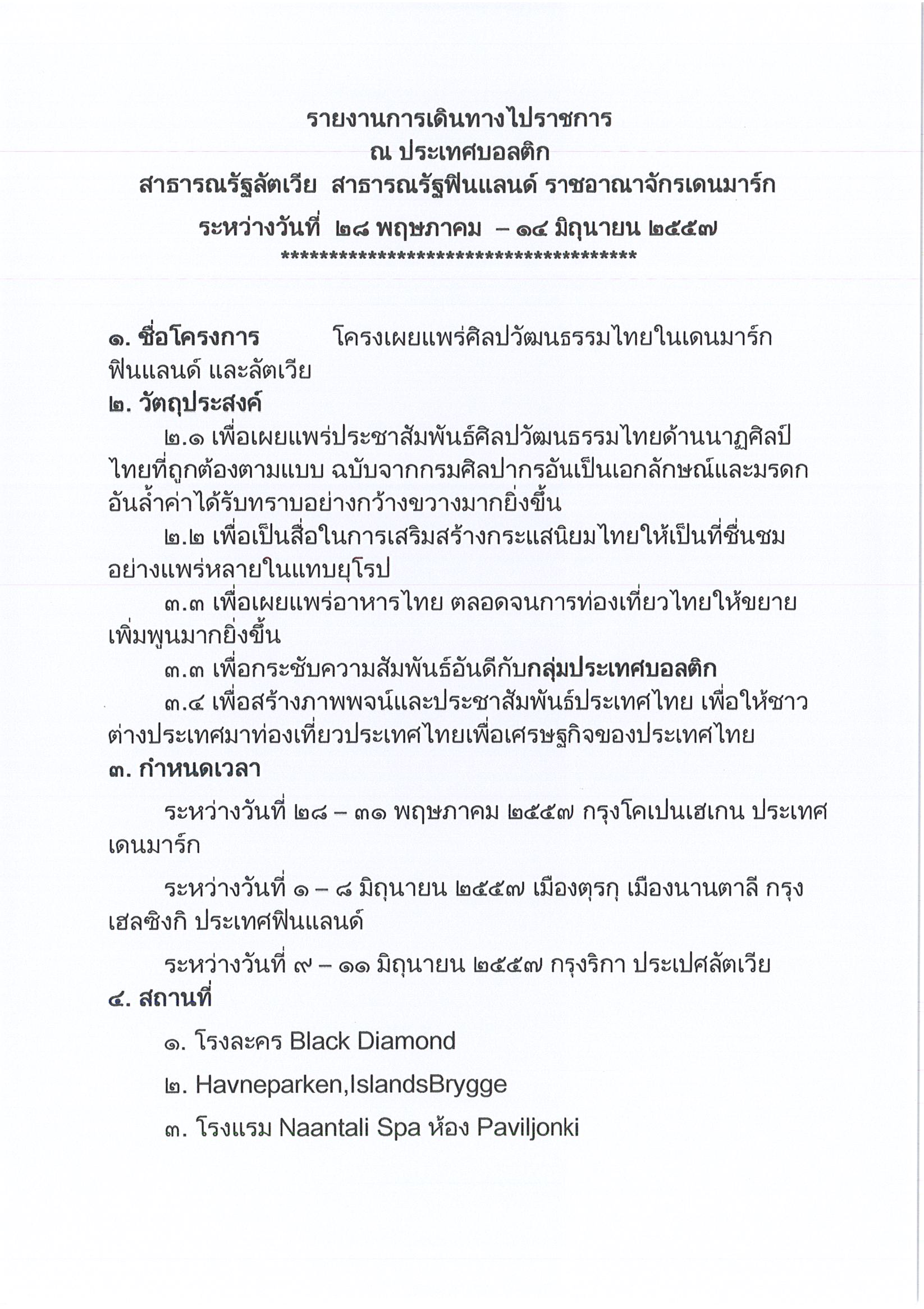รายงานการเดินทางไปราชการ ณ กลุ่มประเทศบอลติก (สาธารณรัฐลัตเวีย สาธารณรัฐฟินแลนด์ และราชอาณาจักรเดนมาร์ก) ระหว่างวันที่ 18 พฤษภาคม – 14 มิถุนายน 2557 โครงการเผยแพร่ศิลปวัฒนธรรมไทยในเดนมาร์ก ฟินแลนด์ และลัตเวีย
