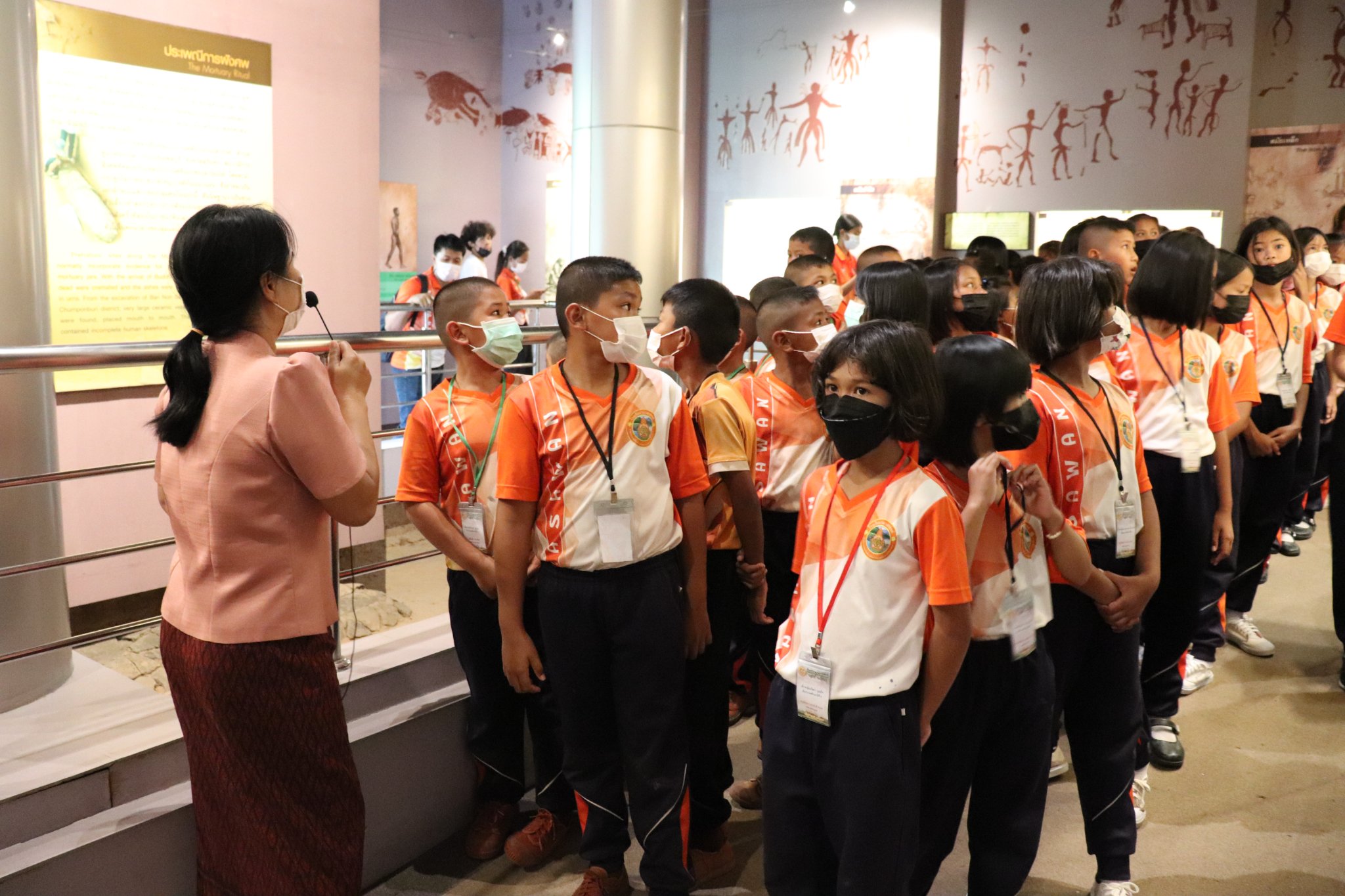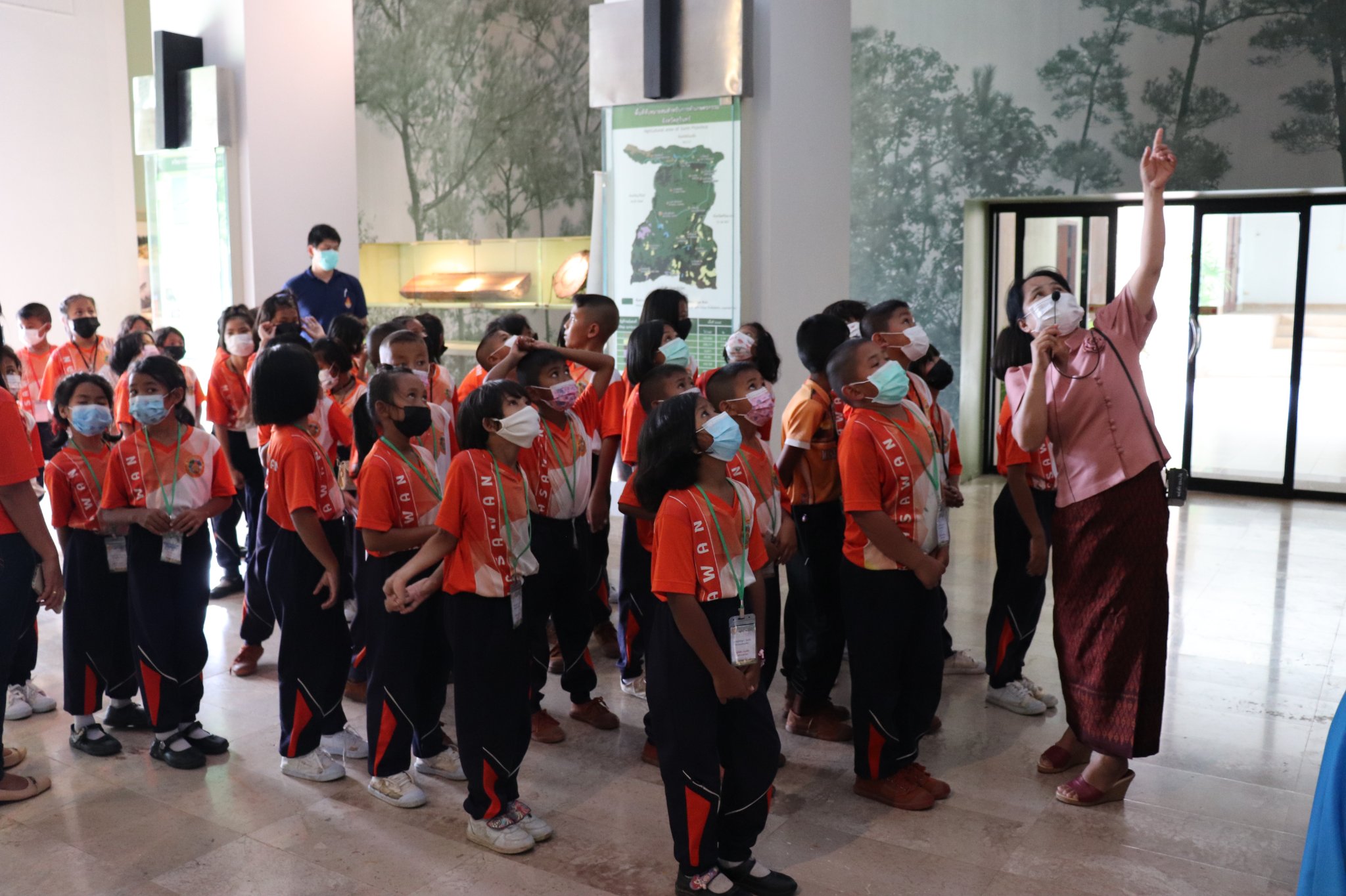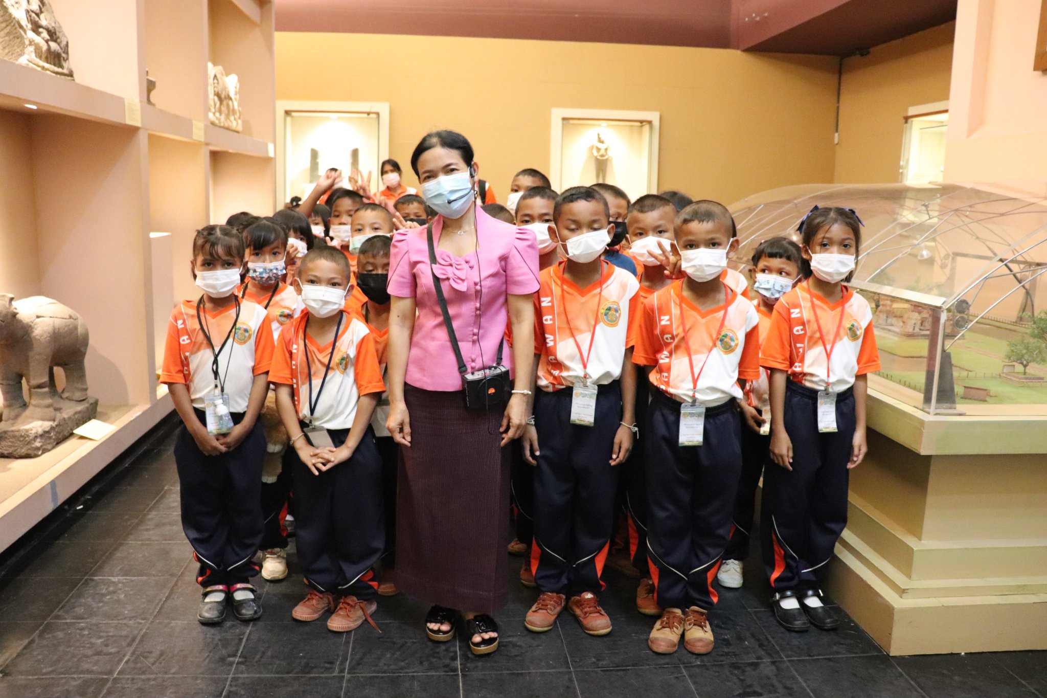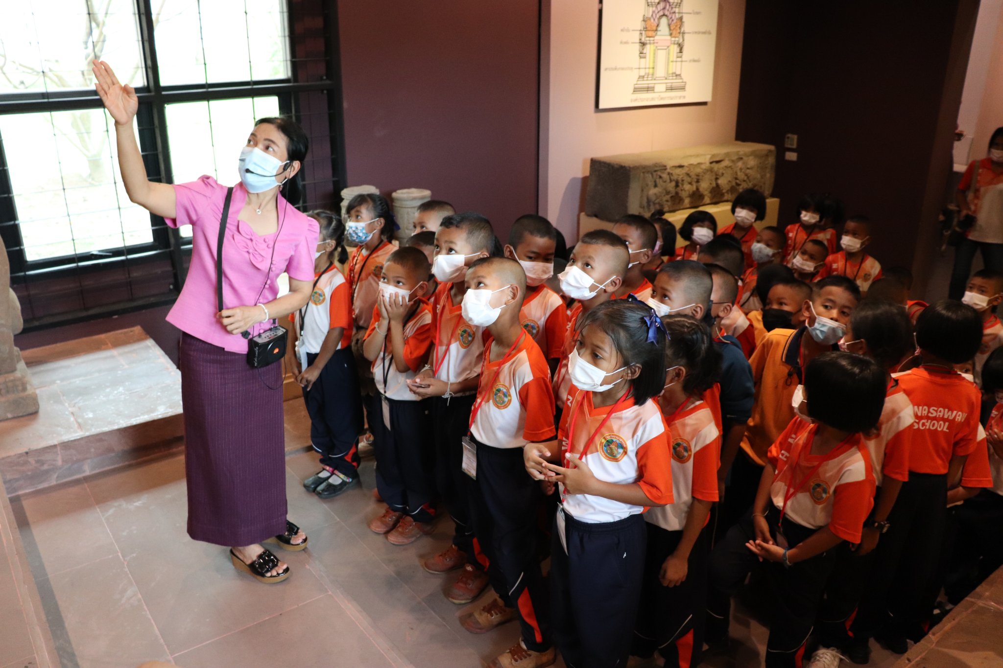 วันศุกร์ที่ ๕ สิงหาคม พ.ศ. ๒๕๖๕ เวลา ๑๓.๓๐ น. นักเรียนชั้นประถมศึกษาที่ ๑-๔ โรงเรียนวนาสวรรค์ ตำบลไพรพัฒนา อำเภอภูสิงห์ จังหวัดศรีสะเกษ จำนวน ๑๐๐ คน คุณครูจำนวน ๑๗ คน เข้าเยี่ยมชมพิพิธภัณฑสถานแห่งชาติ สุรินทร์ โดยแบ่งการบรรยายนำชมออกเป็น ๒ กลุ่มย่อย เพื่อป้องกันการแพร่ระบาดของเชื้อโควิด - ๑๙ อย่างเคร่งครัด โดยมีนางสาวอภิญญา สุขใหญ่ นางศรีสุดา ศรีสด พนักงานประจำห้อง ให้การต้อนรับและบรรยายนำชม