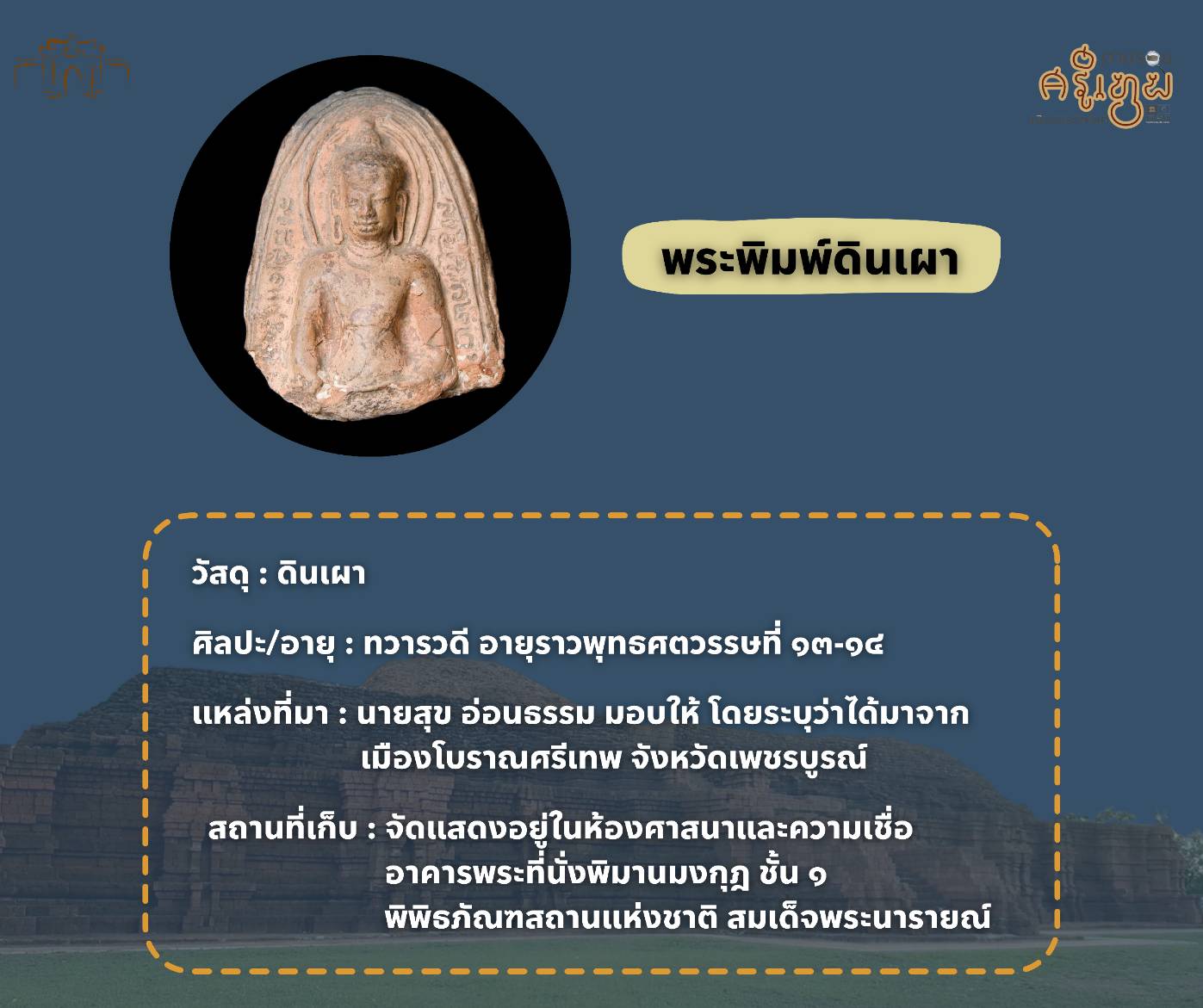 เนื่องในโอกาสที่เมืองโบราณศรีเทพได้รับการประกาศขึ้นทะเบียนเป็นมรดกโลก พิพิธภัณฑสถานแห่งชาติ สมเด็จพระนารายณ์ขอนำเสนอองค์ความรู้เกี่ยวกับโบราณวัตถุจากเมืองศรีเทพที่เก็รักษาอยู่ในพิพิธภัณฑ์ เรื่อง " ชิ้นส่วนพระพิมพ์ดินเผาจากเมืองโบราณศรีเทพ" ซึ่งจัดแสดงประกอบนิทรรศการตามรอยศรีเทพ