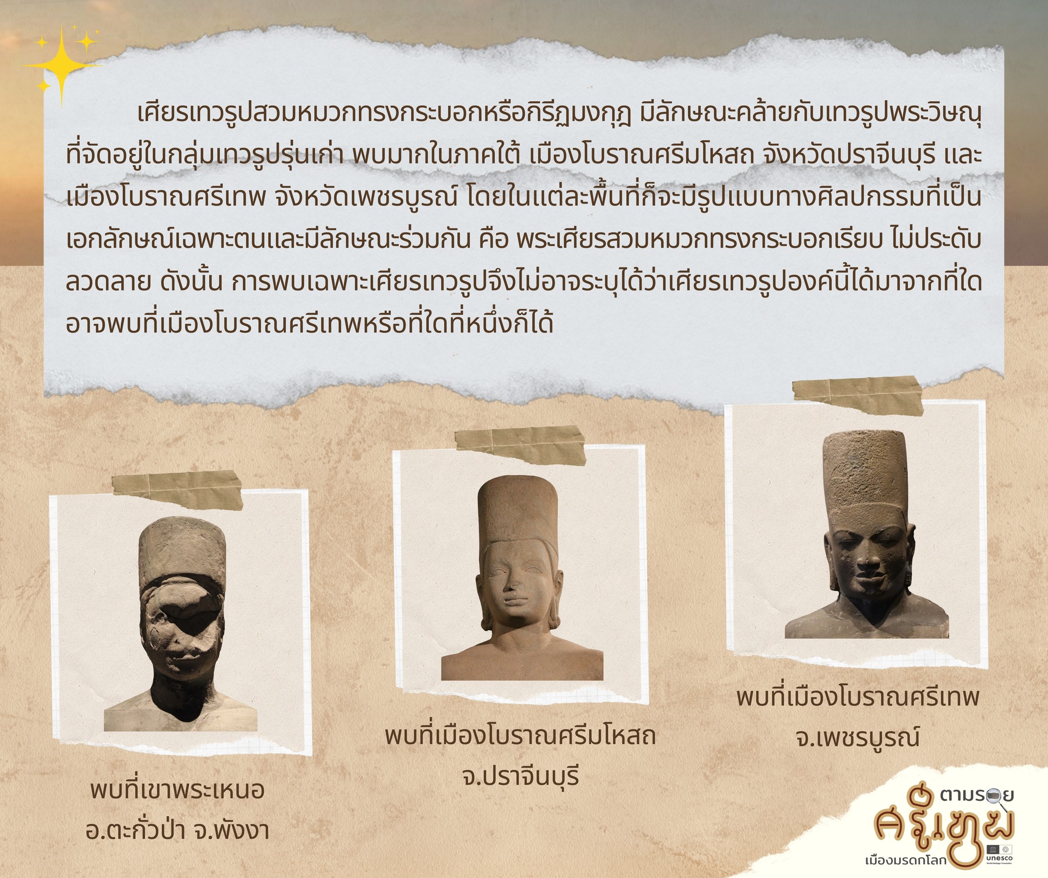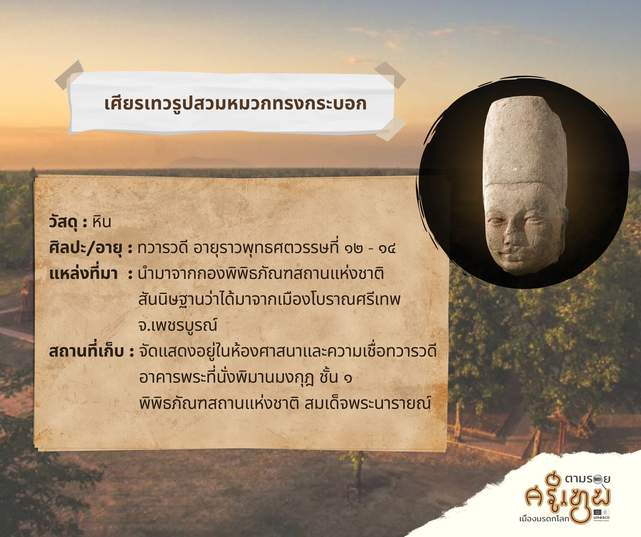 เนื่องในโอกาสที่เมืองโบราณศรีเทพได้รับการประกาศขึ้นทะเบียนเป็นมรดกโลก พิพิธภัณฑสถานแห่งชาติ สมเด็จพระนารายณ์ขอนำเสนอองค์ความรู้เกี่ยวกับโบราณวัตถุจากเมืองศรีเทพที่เก็บรักษาอยู่ในพิพิธภัณฑ์ เรื่อง "์เศียรเทวรูปสวมหมวกทรงกระบอกในพิพิธภัณฑสถานแห่งชาติสมเด็จพระนารายณ์" ซึ่งจัดแสดงประกอบนิทรรศการตามรอยศรีเทพ เมืองมรดกโลก