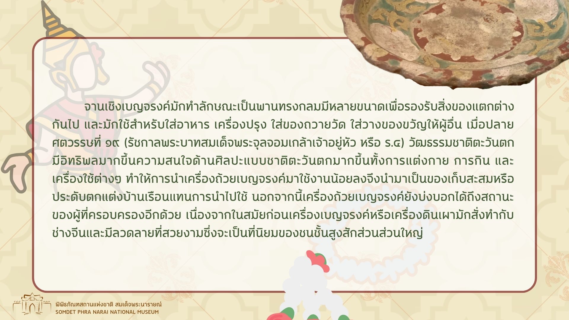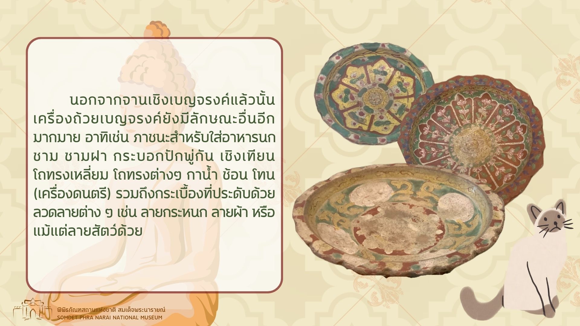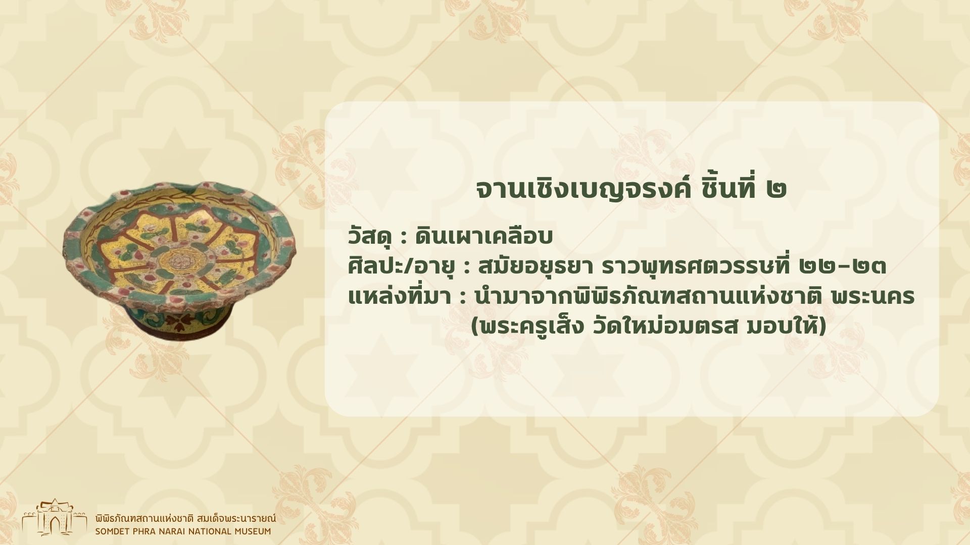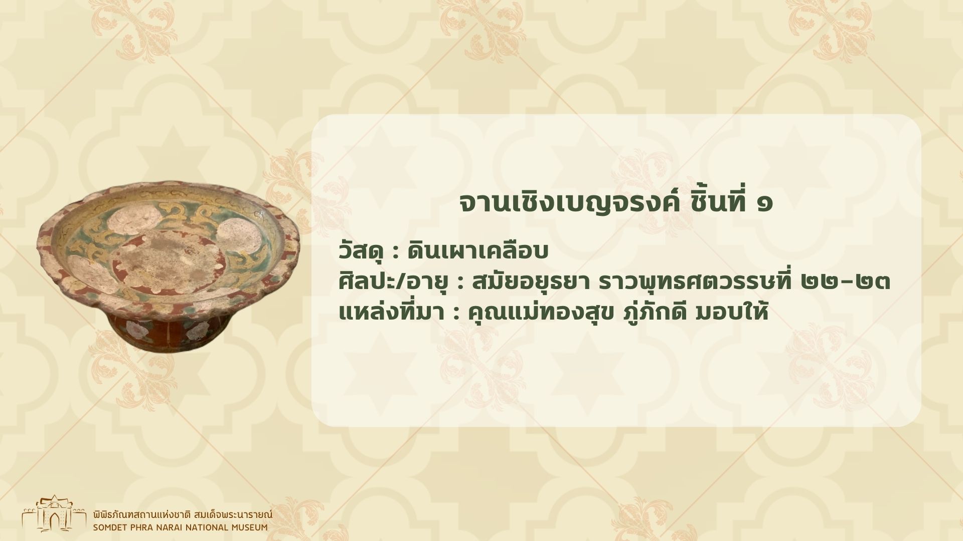 วันนี้พิพิธภัณฑสถานแห่งชาติ สมเด็จพระนารายณ์ ขอนำเสนอองค์ความรู้เรื่อง "จานเชิงเบญจรงค์สมัยอยุธยา" ซึ่งจัดแสดงอยู่ในห้องศิลปะอยุธยา อาคารพระที่นั่งพิมานมงกุฎชั้น ๒ พิพิธภัณฑสถานแห่งชาติ สมเด็จพระนารายณ์