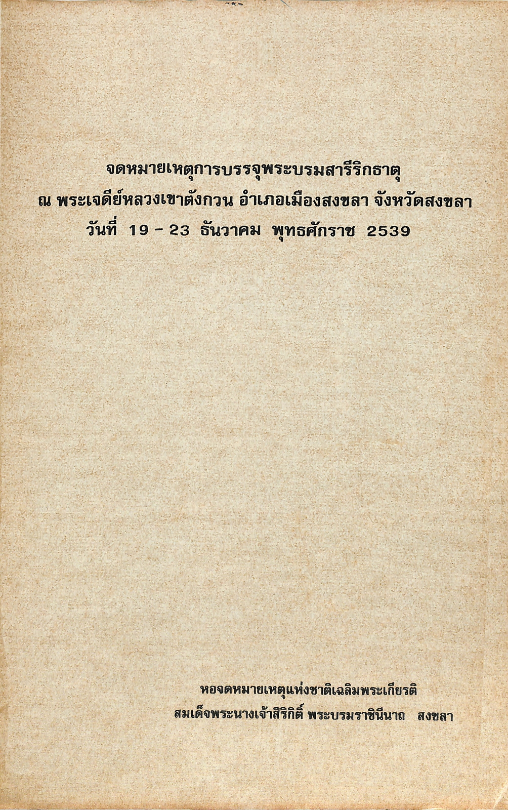 จดหมายเหตุการบรรจุพระบรมสารีริกธาตุ ณ พระเจดีย์หลวงเขาตังกวน
