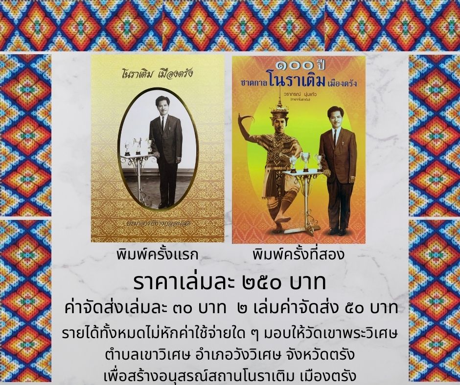 ประชาสัมพันธ์จำหน่ายหนังสือ โนราเติมเมืองตรัง และ ๑๐๐ ปีชาตกาล โนราเติมเมืองตรัง