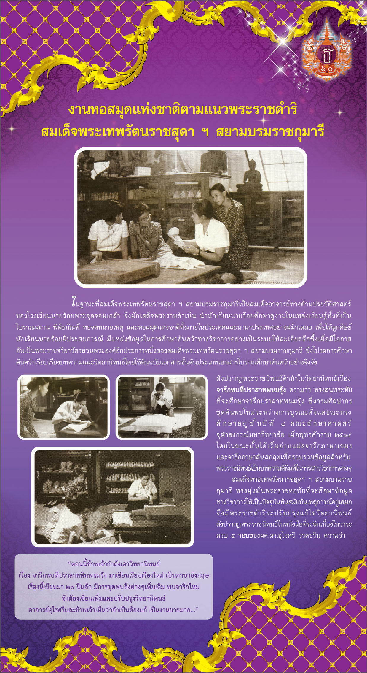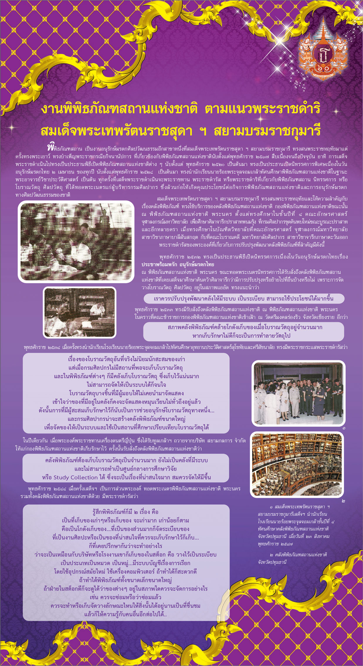 สมเด็จพระเทพรัตนราชสุดาฯ สยามบรมราชกุมารี กับงานอนุรักษ์มรดกไทย พิพิธภัณฑ์ โบราณคดี เเละประวัติศาสตร์ ตามรอยพระบาทสยามบรมราชกุมารี