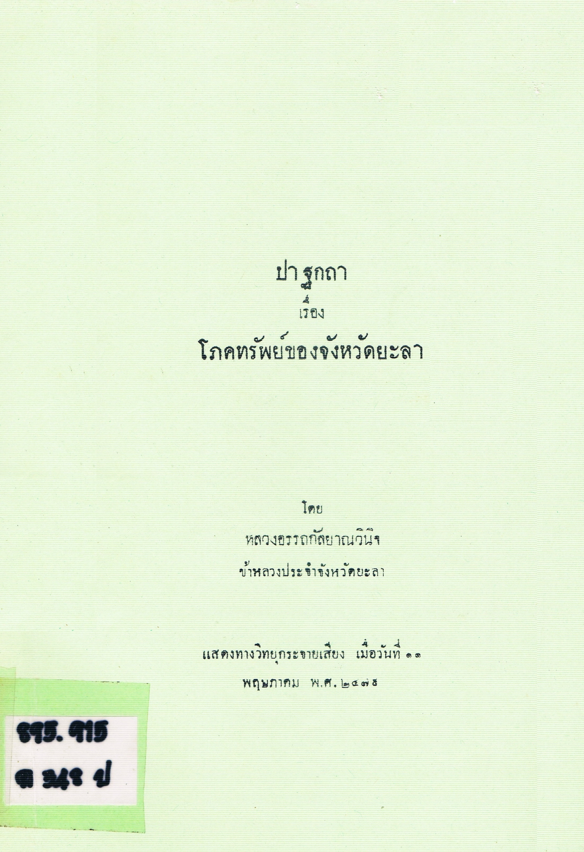 ปาฐกถา เรื่อง โภคทรัพย์ของจังหวัดยะลา