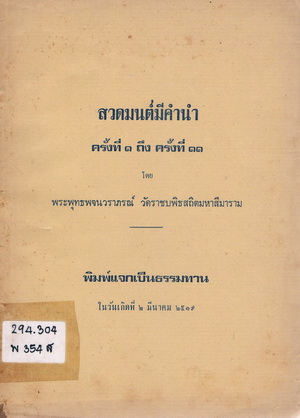 สวดมนต์มีคำนำ ครั้งที่ ๑ ถึง ครั้งที่ ๑๑