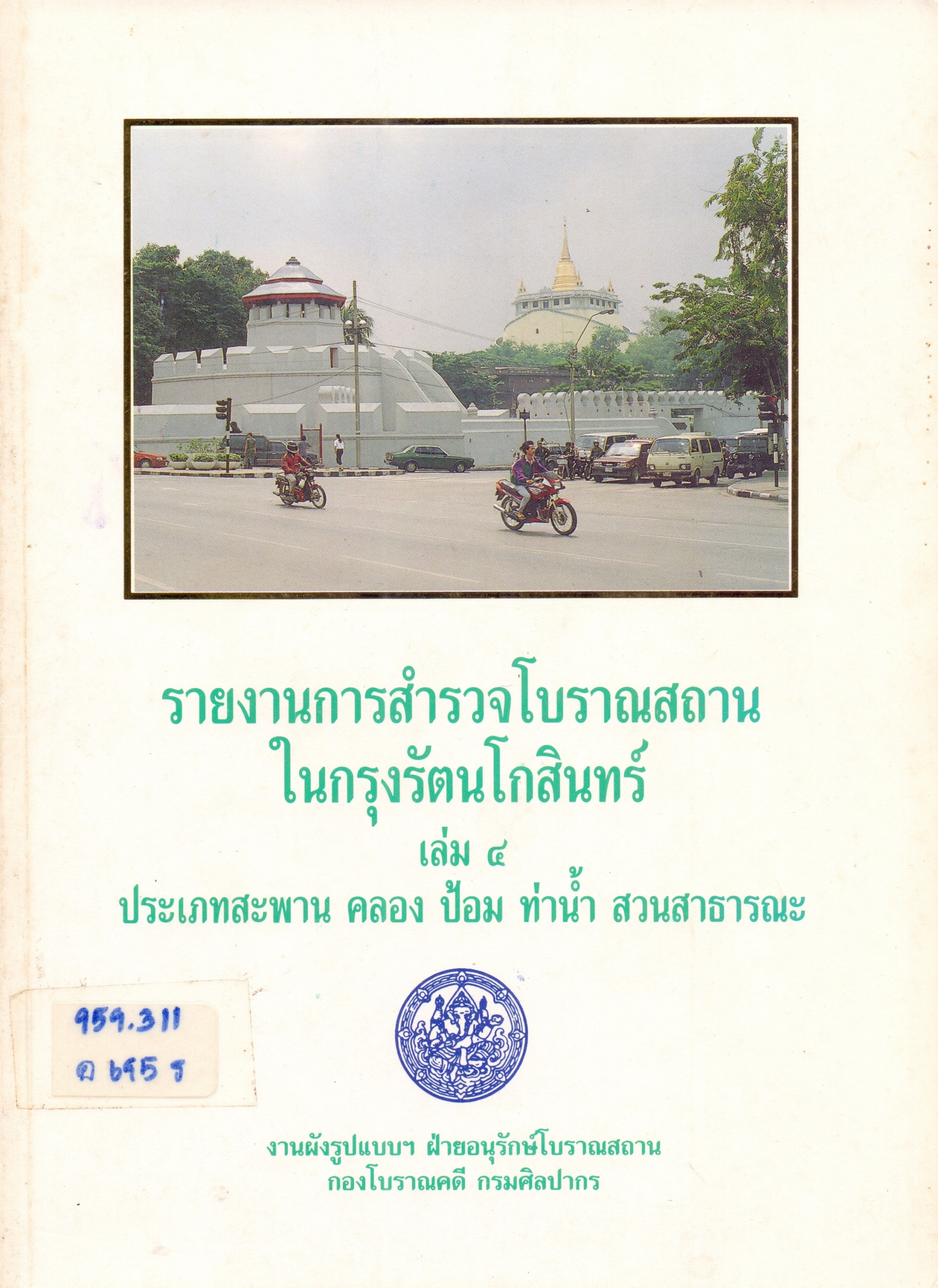 รายงานการสำรวจโบราณสถานในกรุงรัตนโกสินทร์ เล่ม๔ ประเภทสะพาน คลองป้อมท่าน้ำ สวนสาธารณะ