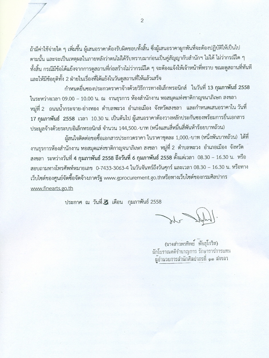 ประกวดราคาจ้างเหมาโครงการปรับปรุงหอสมุดแห่งชาติกาญจนาภิเษก สงขลา ตำบลพะวง อำเภอเมืองสงขลา จังหวัดสงขลา ด้วยวิธีการทางอิเล็กทรอนิกส์ ( ครั้งที่ 2 )