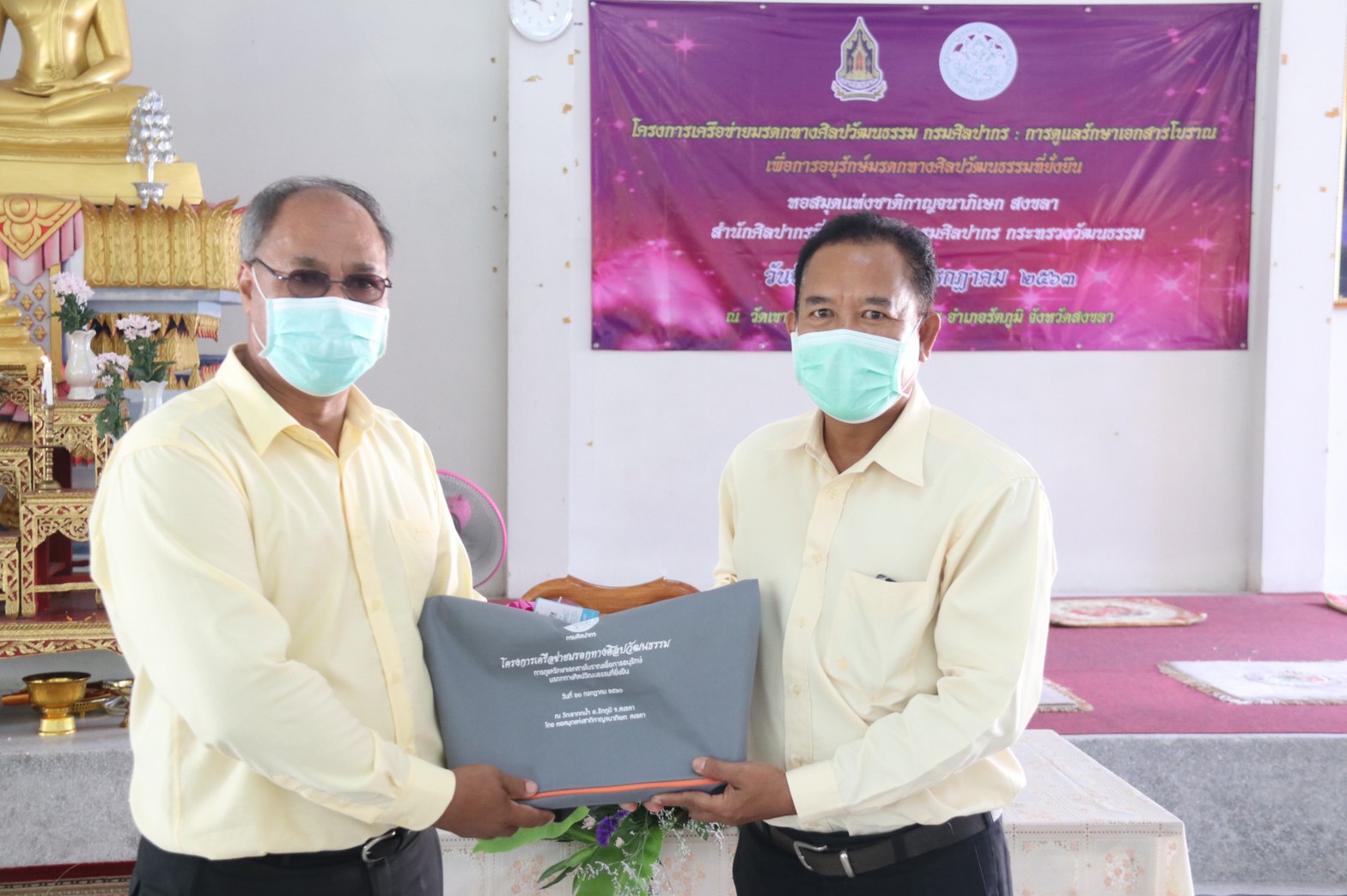 โครงการเครือข่ายมรดกทางศิลปวัฒนธรรม กรมศิลปากร : การดูแลรักษาเอกสารโบราณเพื่อการอนุรักษ์มรดกทางศิลปวัฒนธรรมที่ยั่งยืน เมื่อวันที่ ๒๐ กรกฎาคม พ.ศ. ๒๕๖๓ ณ วัดเขาตกน้ำ ต.กำแพงเพชร อ.รัตภูมิ จ.สงขลา