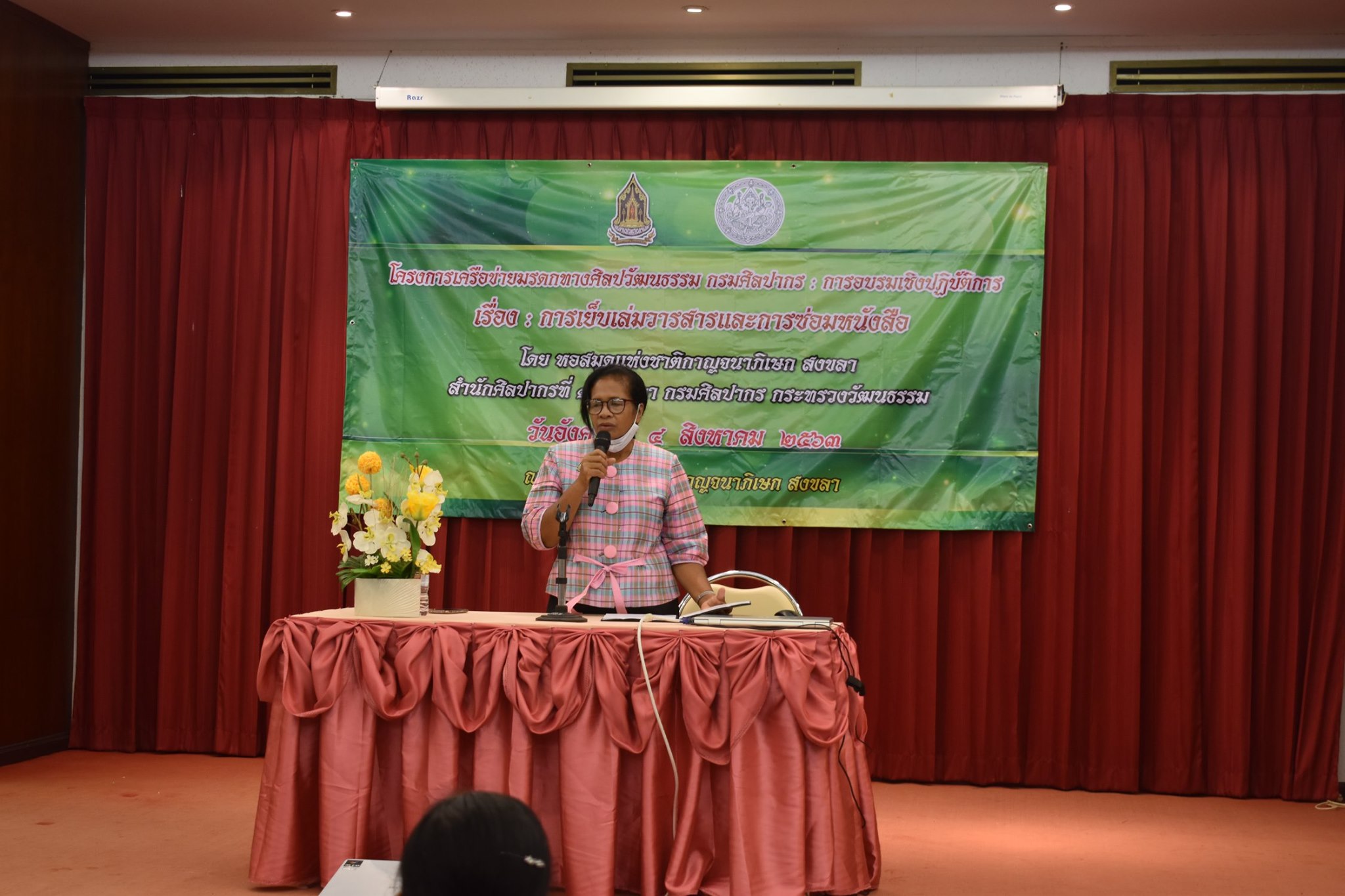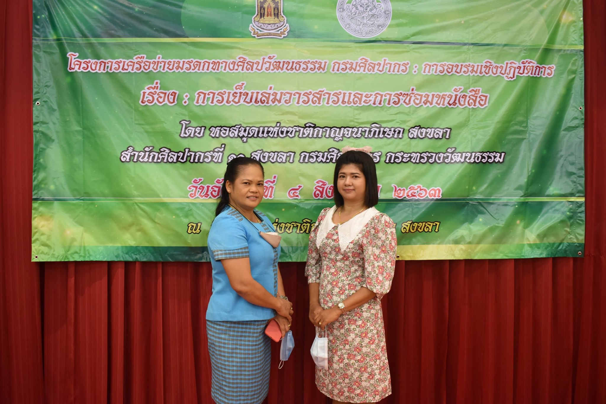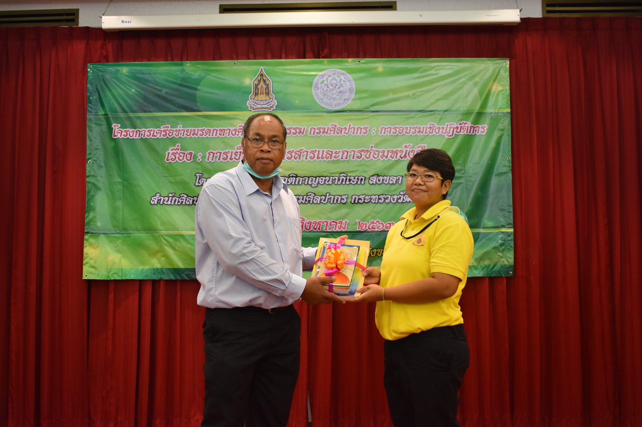 โครงการเครือข่ายมรดกทางศิลปวัฒนธรรมกรมศิลปากร การอบรมเชิงปฏิบัติการเรื่อง " การเย็บเล่มวารสารและการซ่อมหนังสือ " ณ ห้องประชุม หอสมุดแห่งชาติกาญจนาภิเษก สงขลา