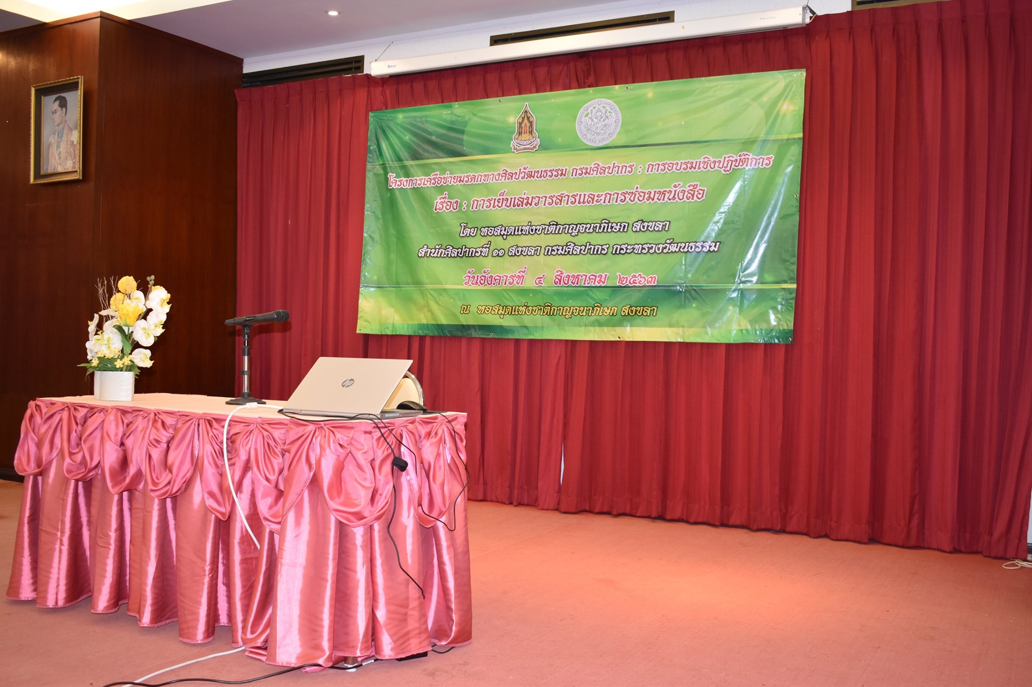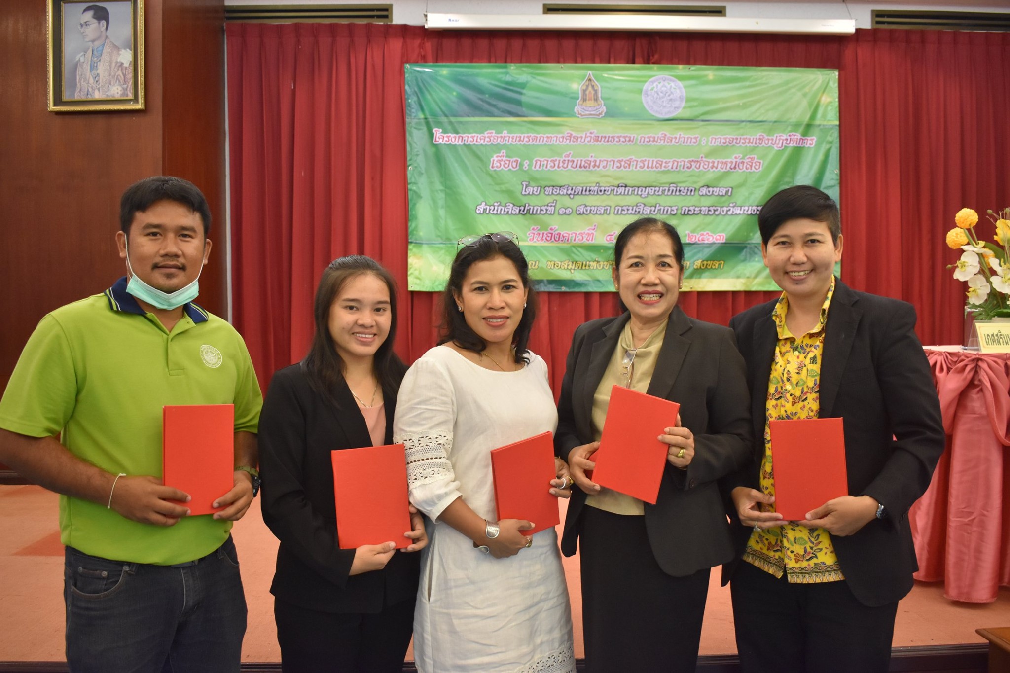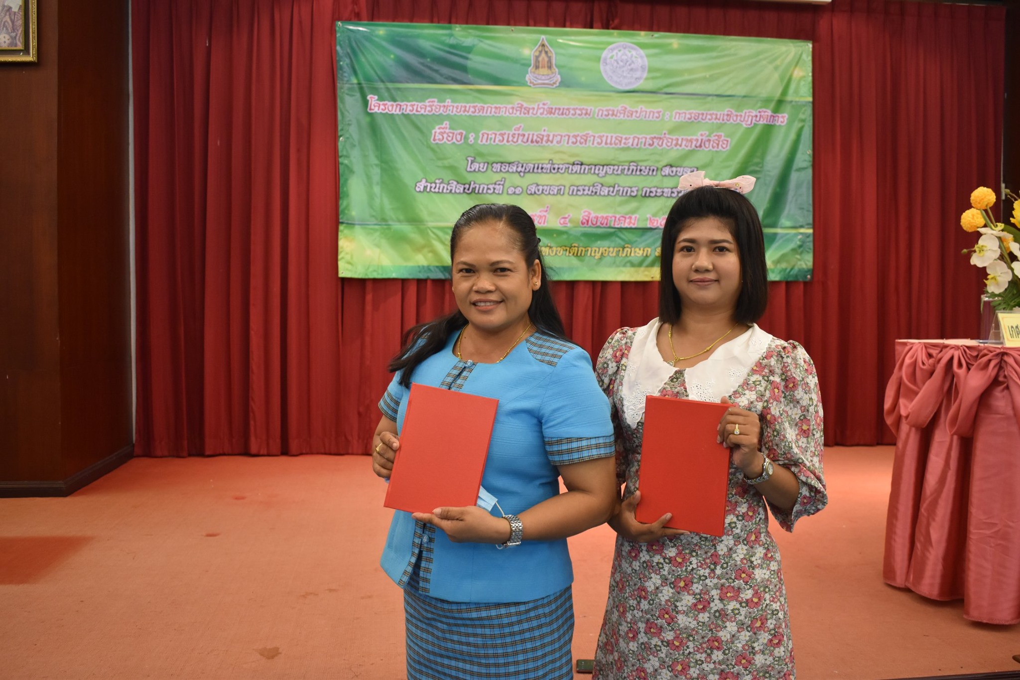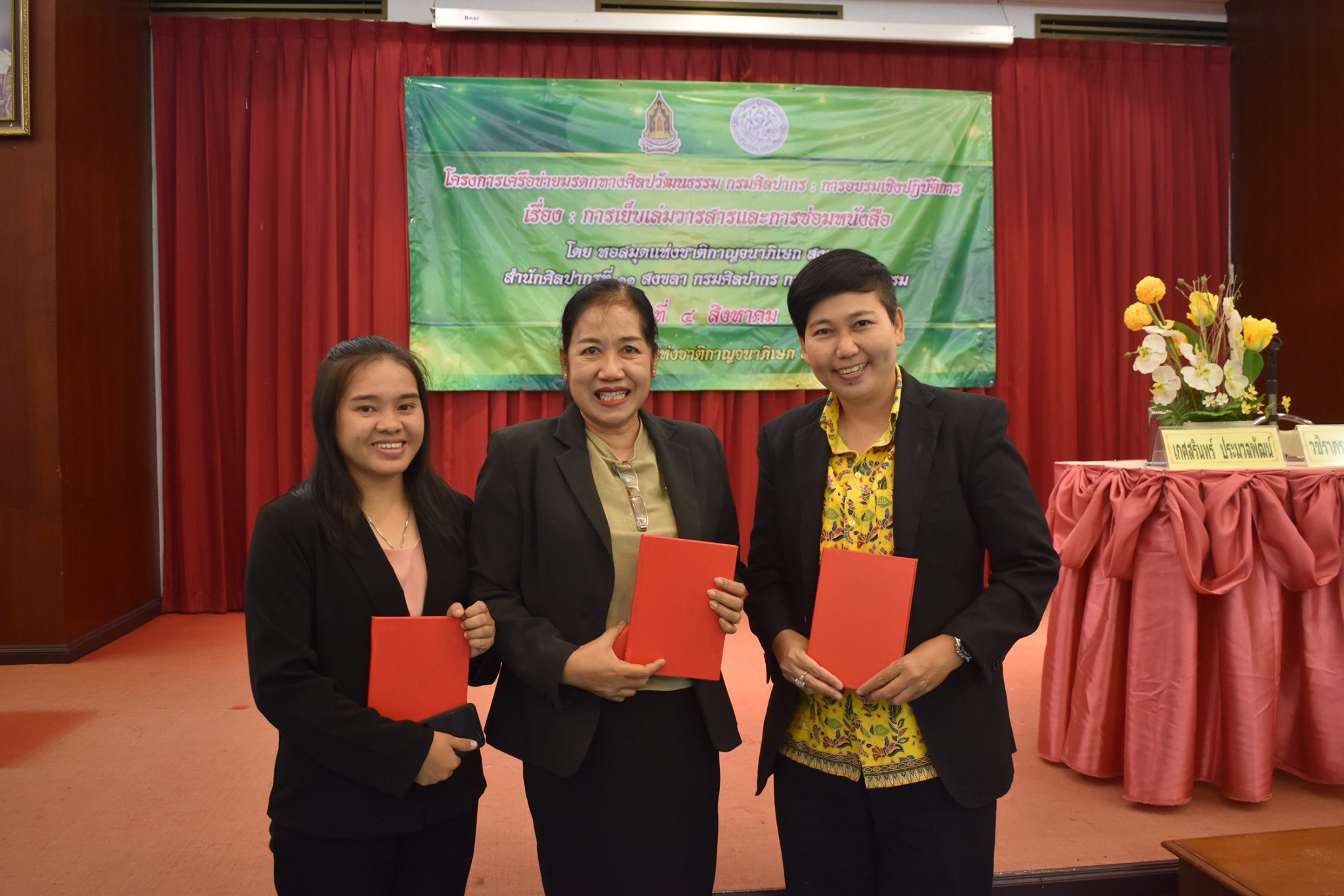โครงการเครือข่ายมรดกทางศิลปวัฒนธรรมกรมศิลปากร การอบรมเชิงปฏิบัติการเรื่อง " การเย็บเล่มวารสารและการซ่อมหนังสือ " ณ ห้องประชุม หอสมุดแห่งชาติกาญจนาภิเษก สงขลา