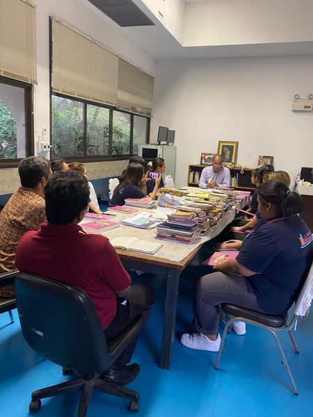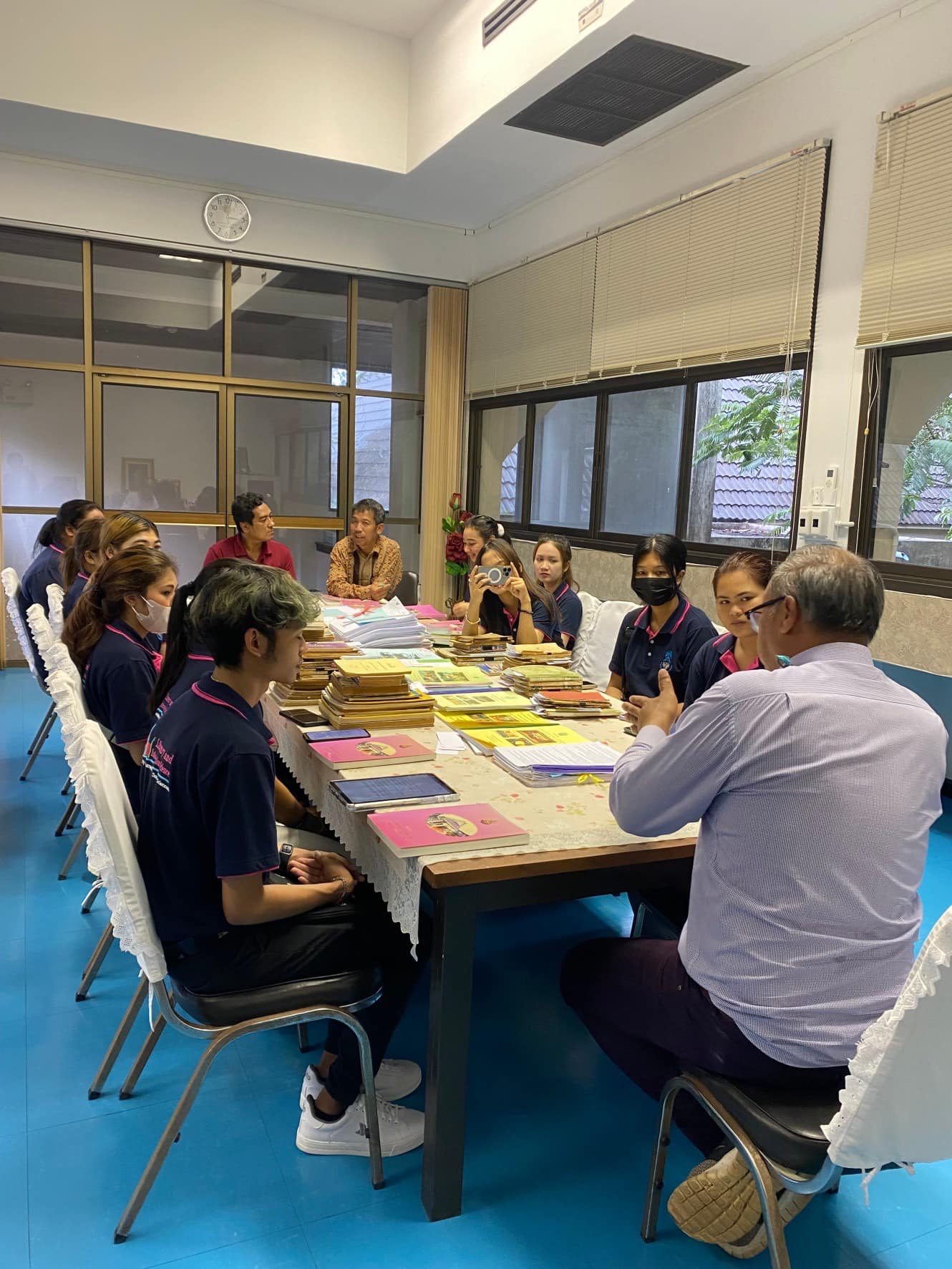 นายสมชายหอมจันทร์ หัวหน้าหอสมุดแห่งชาติกาญจนาภิเษก สงขลา พร้อมบรรณารักษ์และนักภาษาโบราณ ให้การต้อนรับ นำชมและให้สัมภาษณ์เกี่ยวกับการตลาด แก่นิสิตคณะบรรณารักษศาสตร์ ชั้นปีที่ ๓ มหาวิทยาลัยทักษิณ จำนวน ๑๑ คน