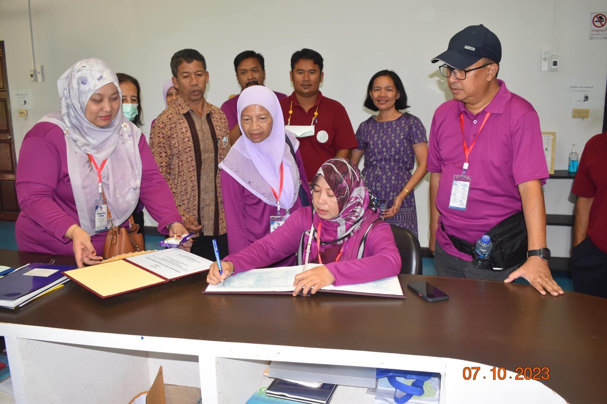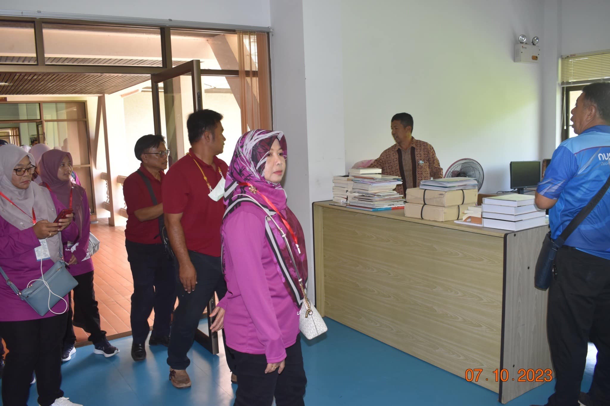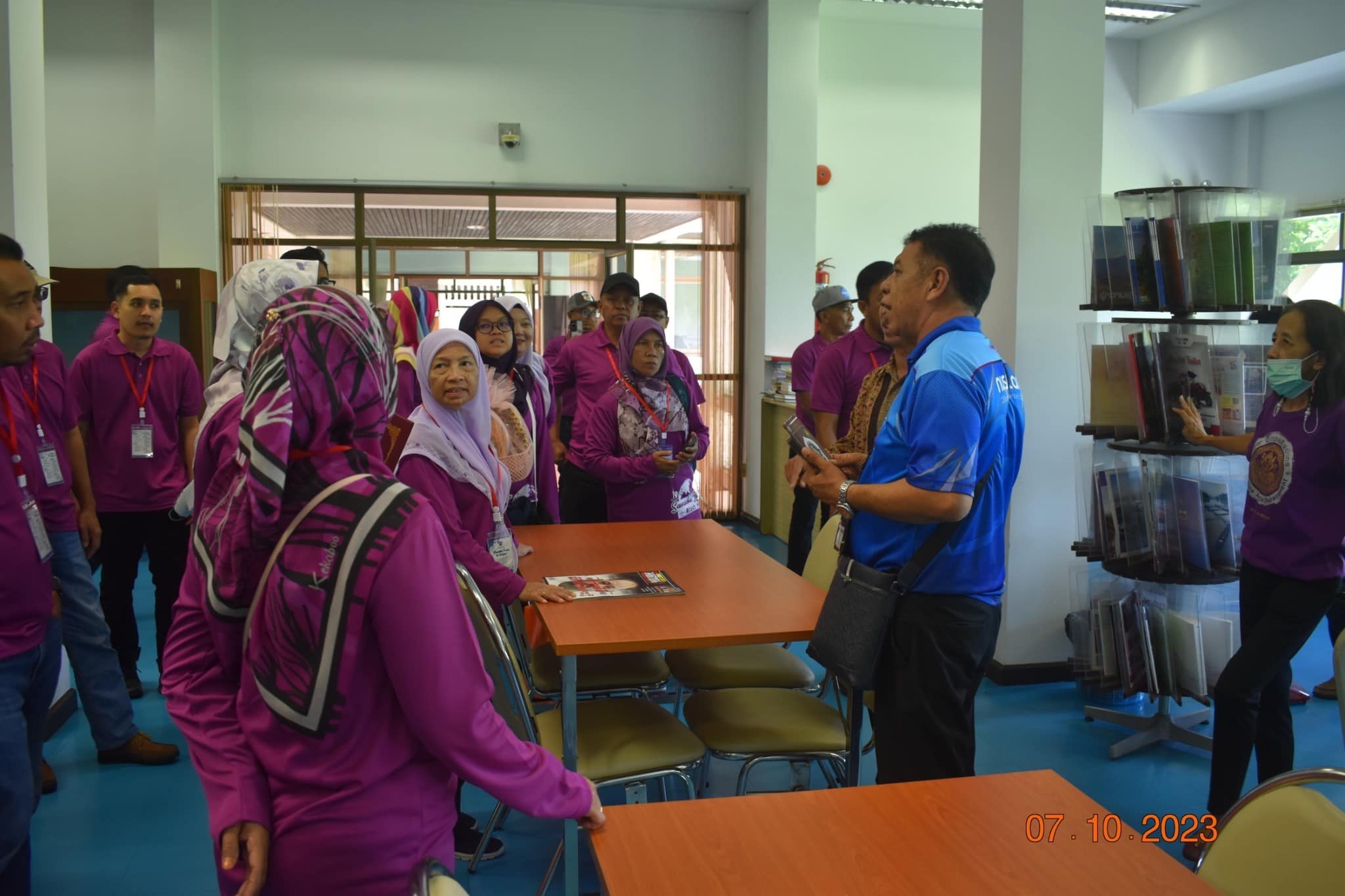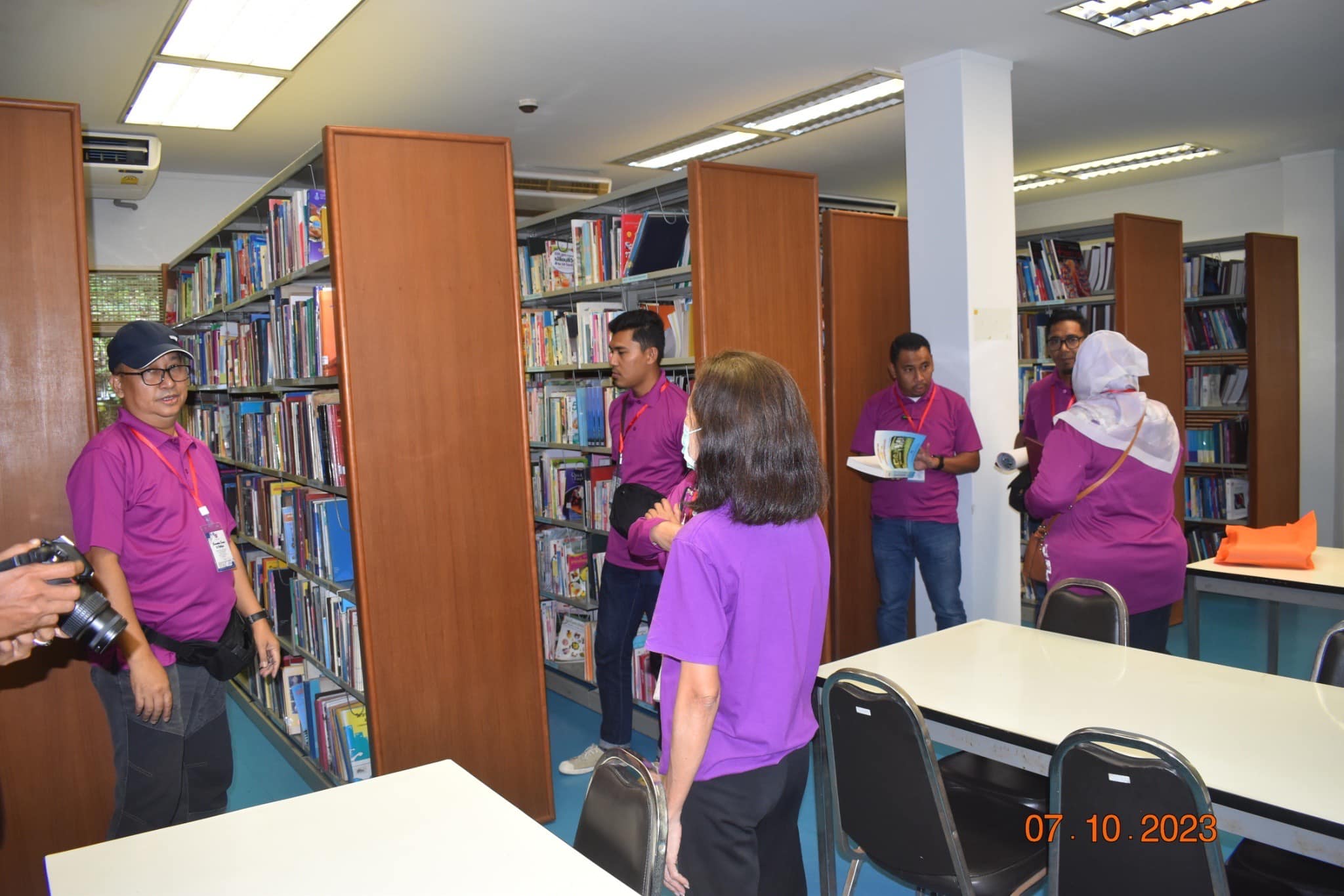 นายสุรพันธ์ สุวรรณโณ บรรณารักษ์ชำนาญการ รักษาการในตำแหน่งหัวหน้าหอสมุดแห่งชาติกาญจนาภิเษก สงขลา พร้อมบุคลลากร ให้การต้อนรับและนำชมแก่คณะผู้บริหารและบรรณารักษ์ จำนวน ๓๒ คน จาก Pahang State Library , Malaysia