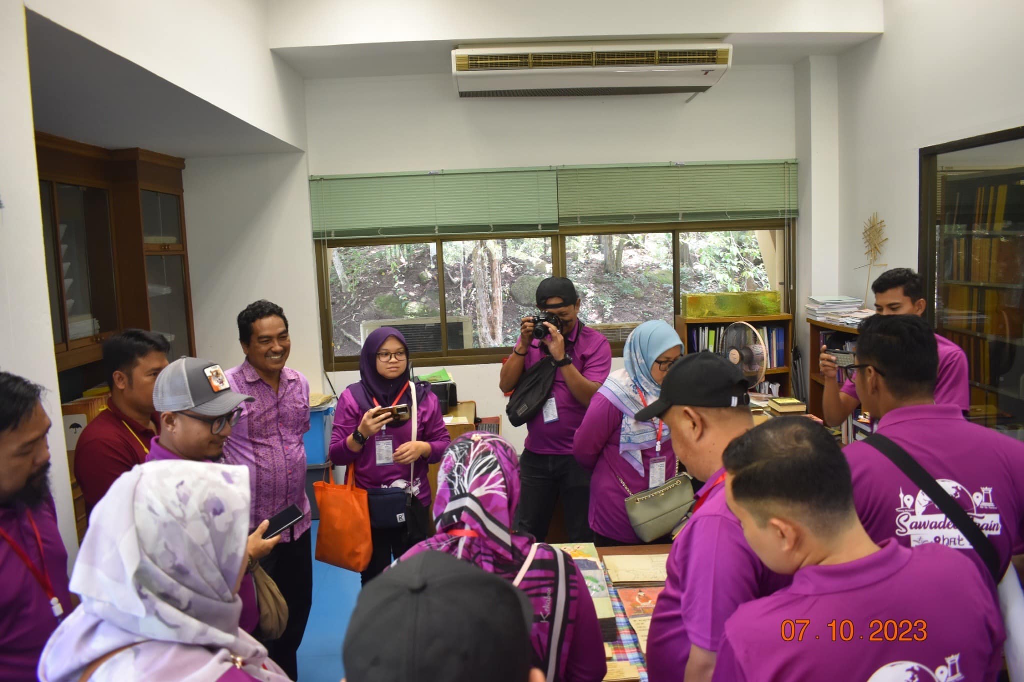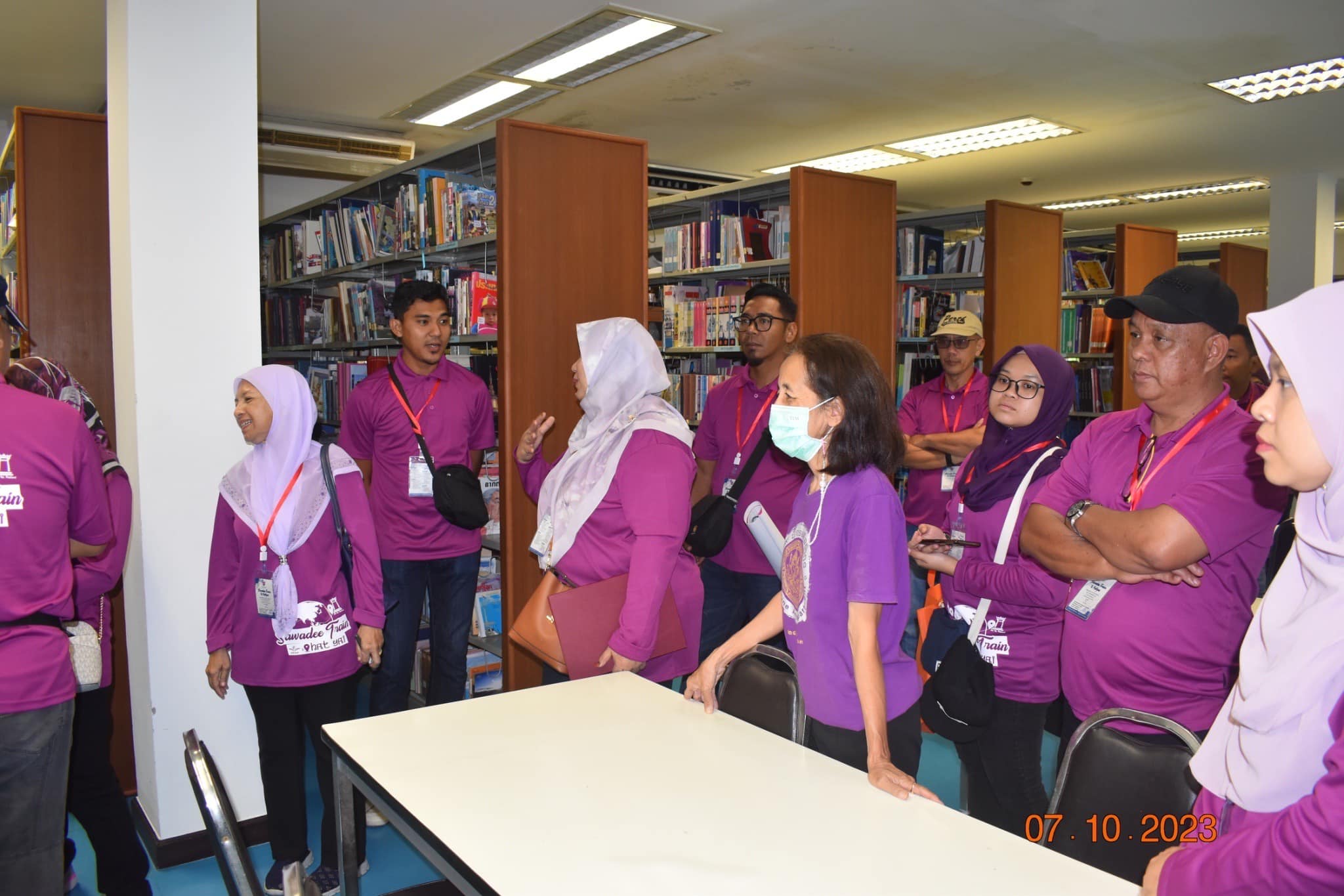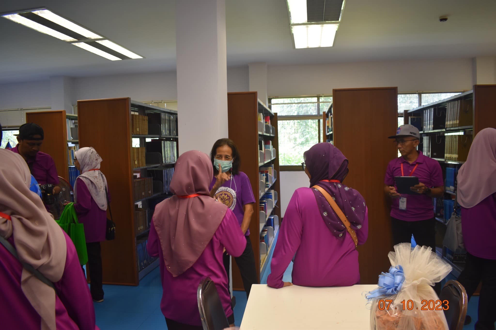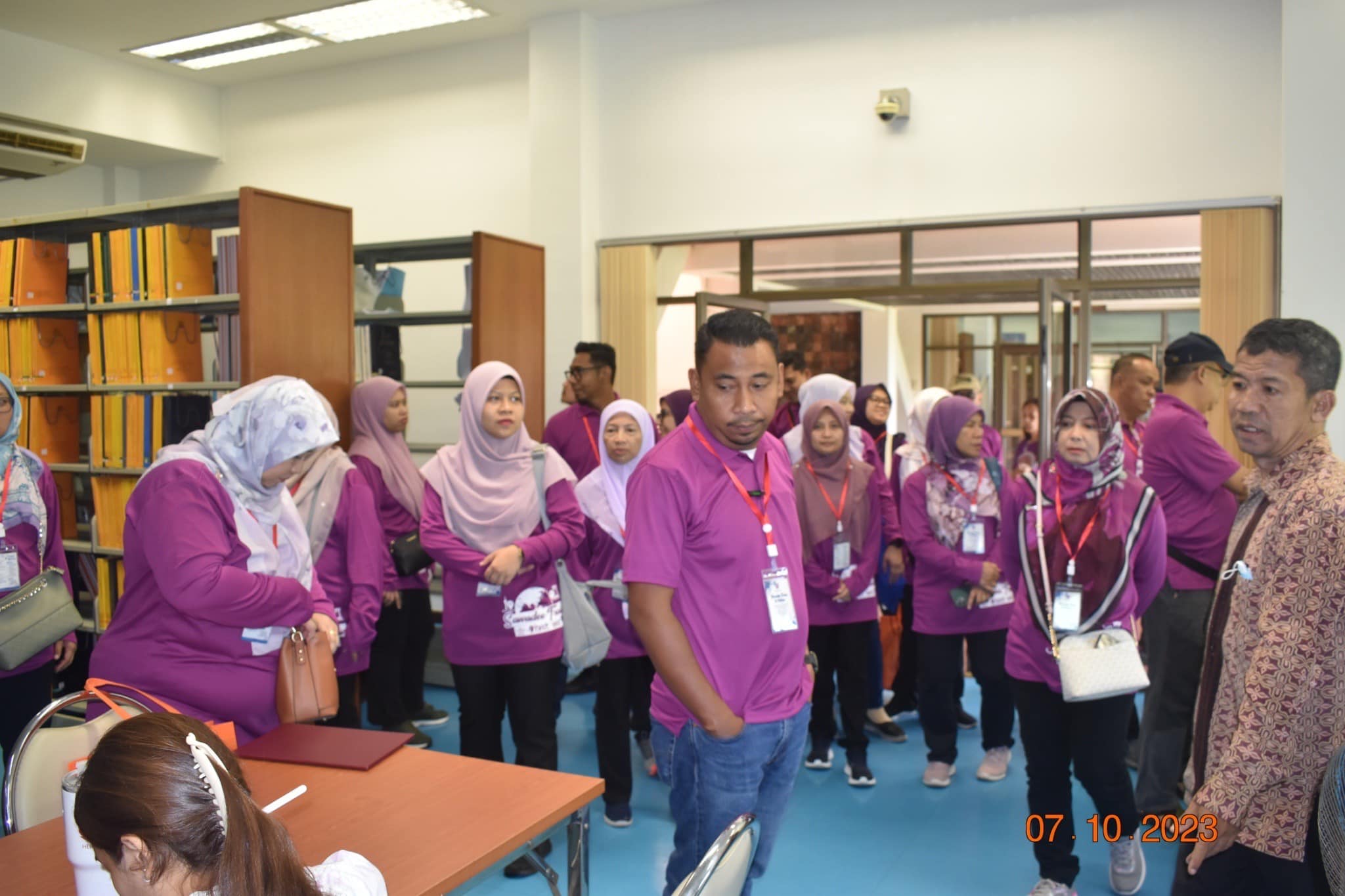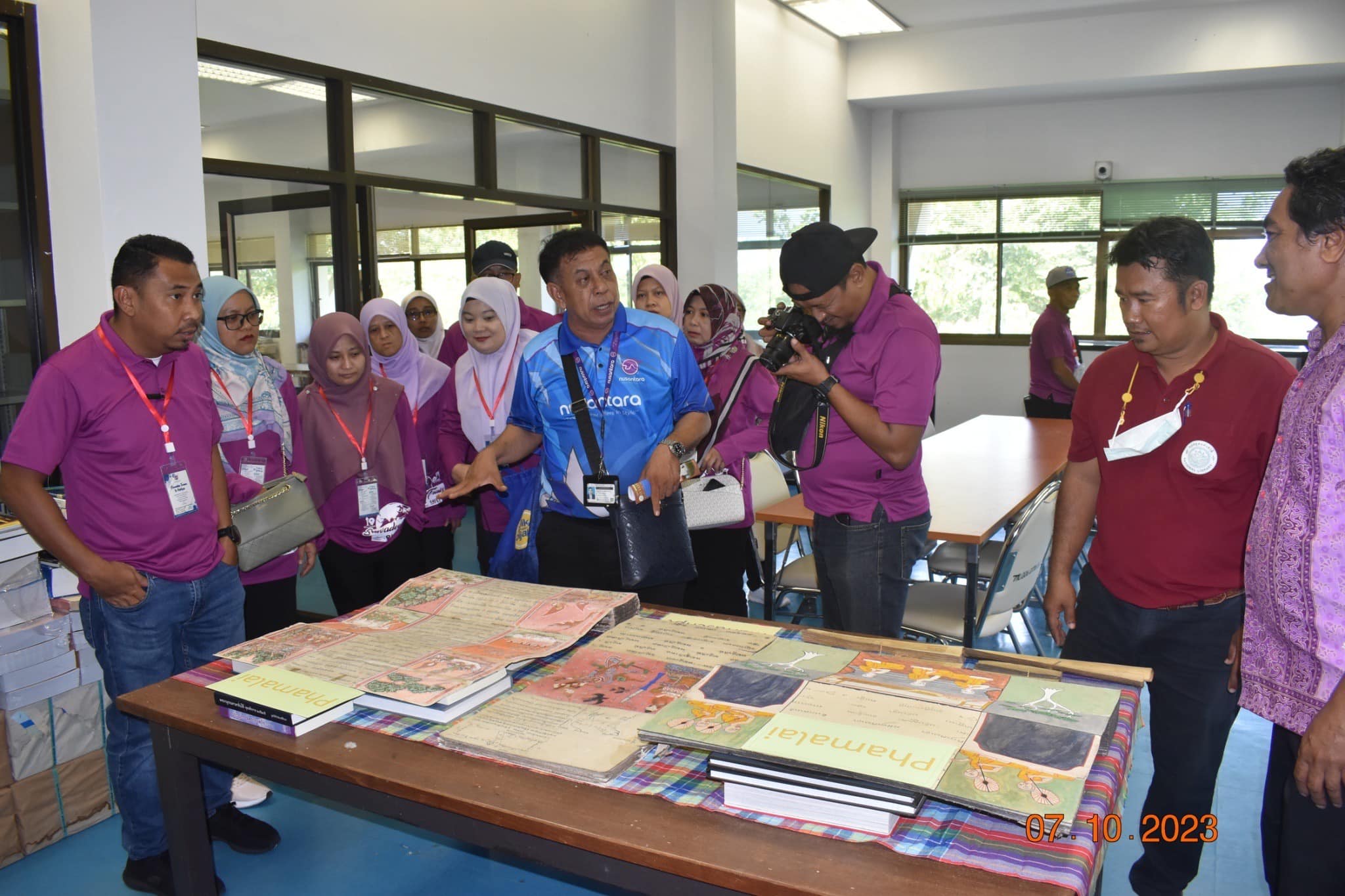 นายสุรพันธ์ สุวรรณโณ บรรณารักษ์ชำนาญการ รักษาการในตำแหน่งหัวหน้าหอสมุดแห่งชาติกาญจนาภิเษก สงขลา พร้อมบุคลลากร ให้การต้อนรับและนำชมแก่คณะผู้บริหารและบรรณารักษ์ จำนวน ๓๒ คน จาก Pahang State Library , Malaysia