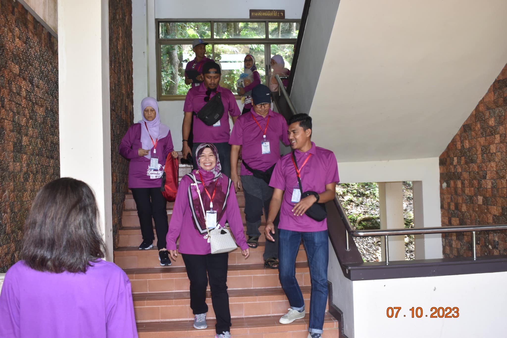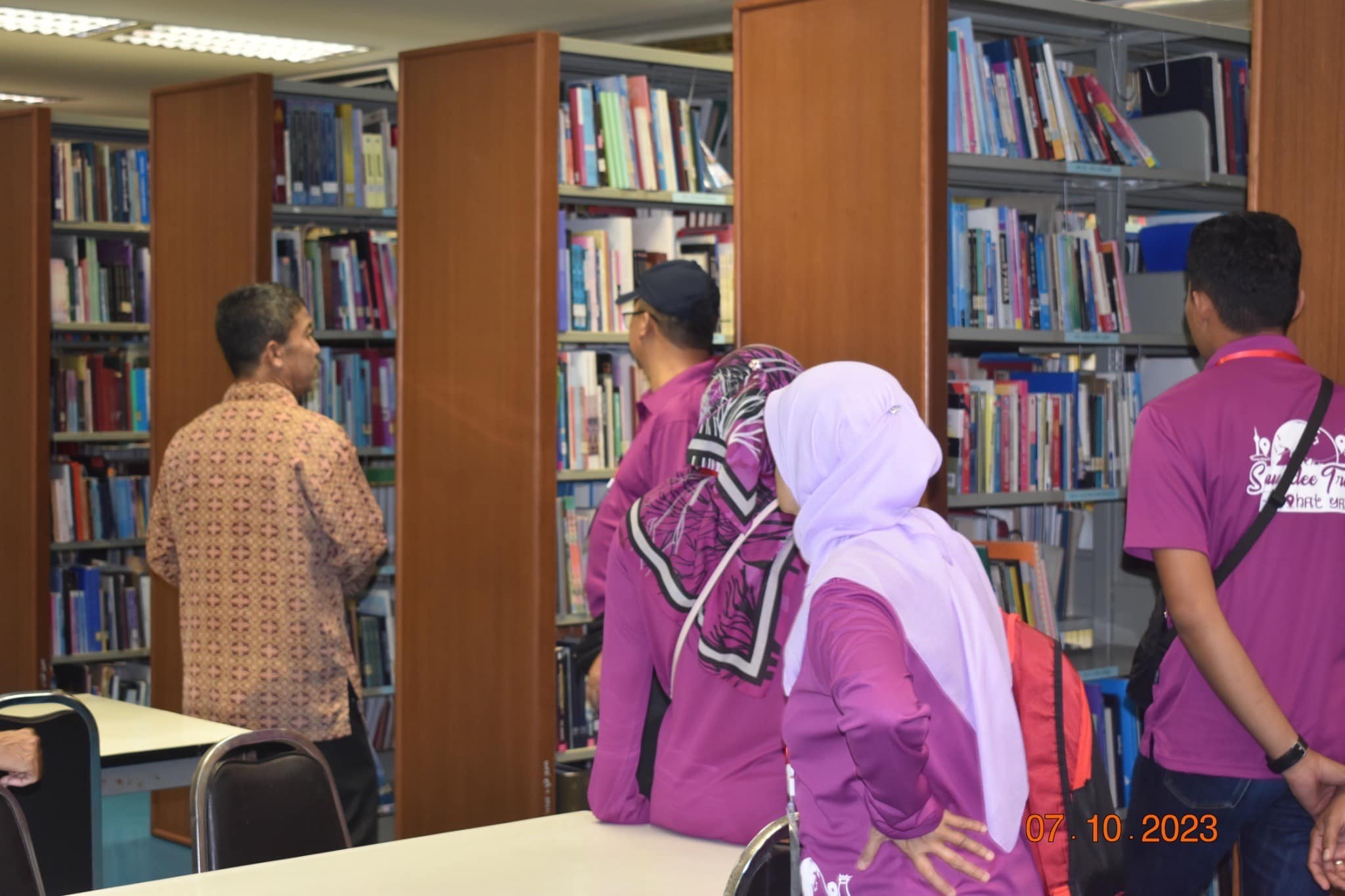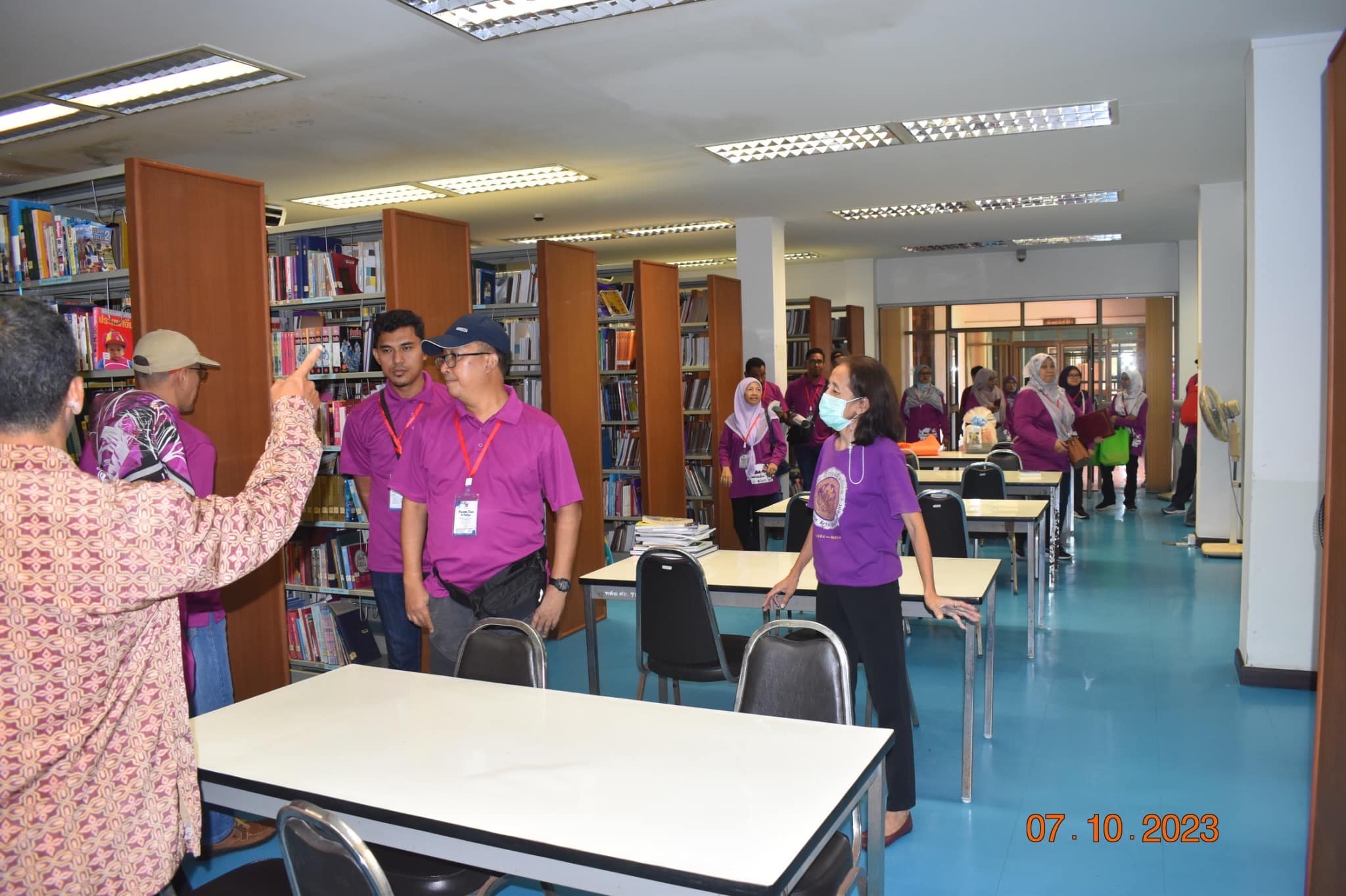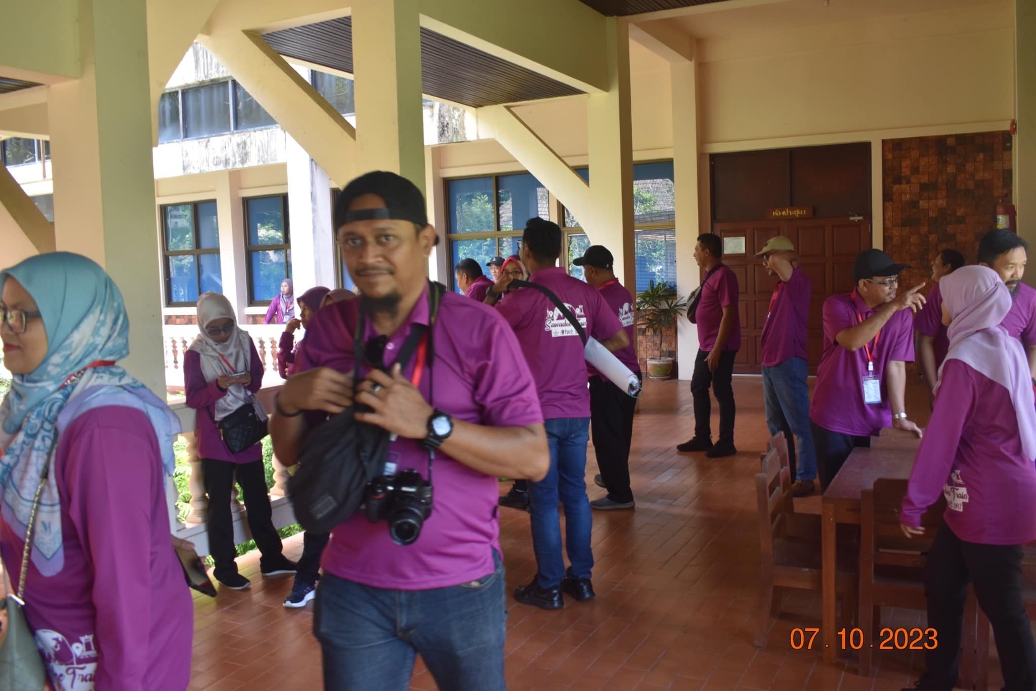 นายสุรพันธ์ สุวรรณโณ บรรณารักษ์ชำนาญการ รักษาการในตำแหน่งหัวหน้าหอสมุดแห่งชาติกาญจนาภิเษก สงขลา พร้อมบุคลลากร ให้การต้อนรับและนำชมแก่คณะผู้บริหารและบรรณารักษ์ จำนวน ๓๒ คน จาก Pahang State Library , Malaysia