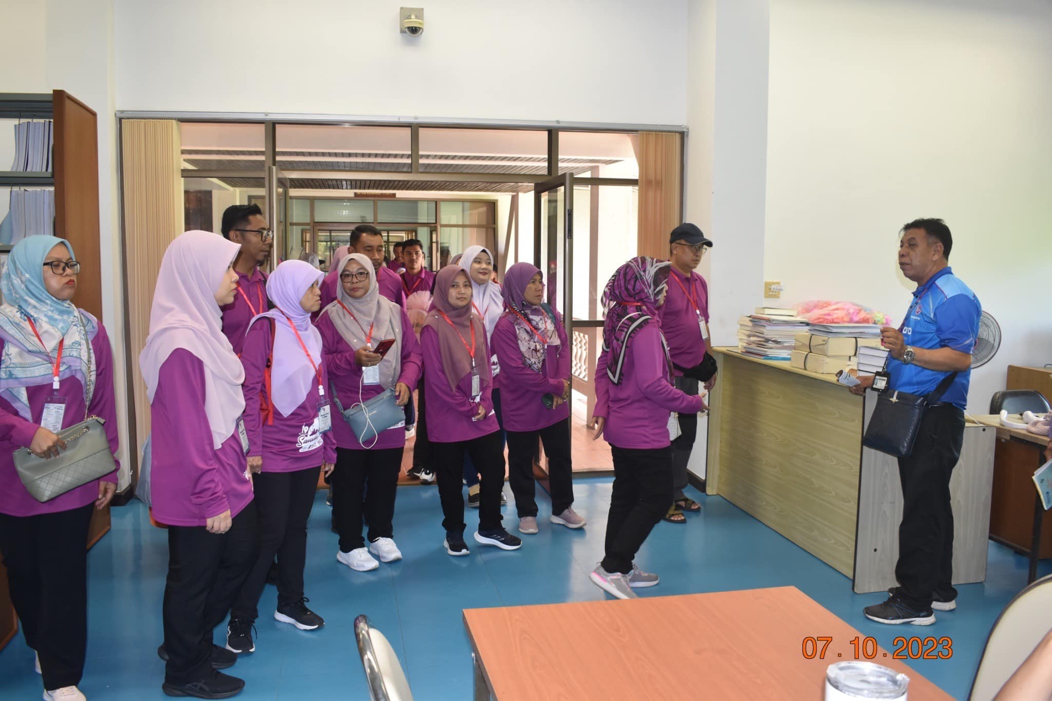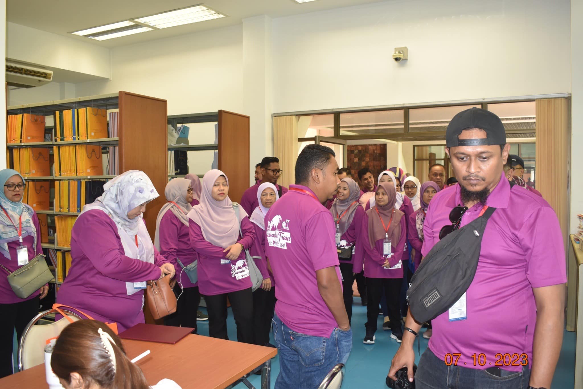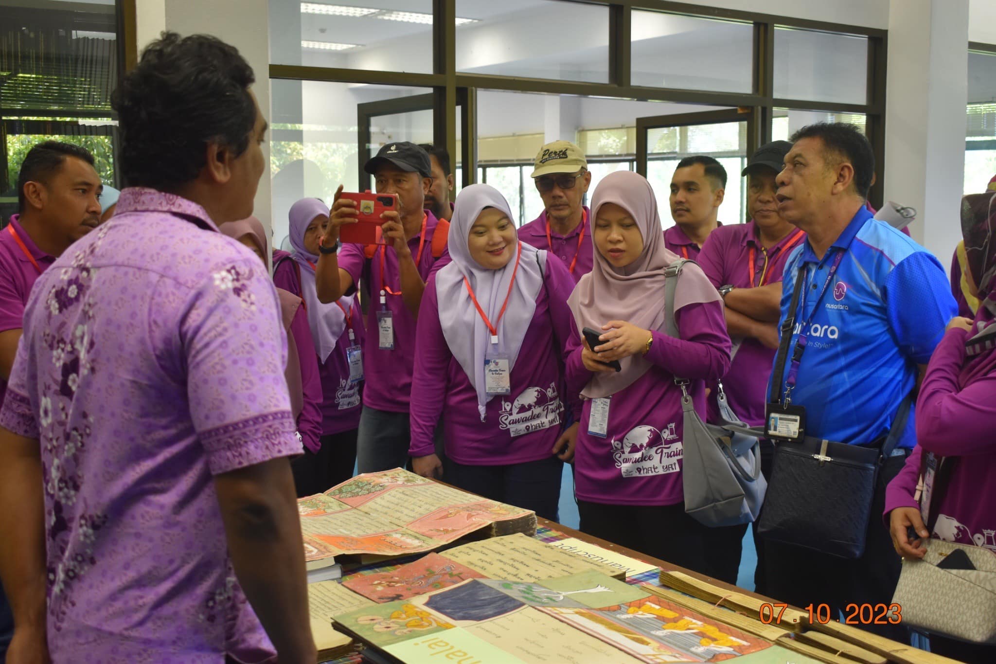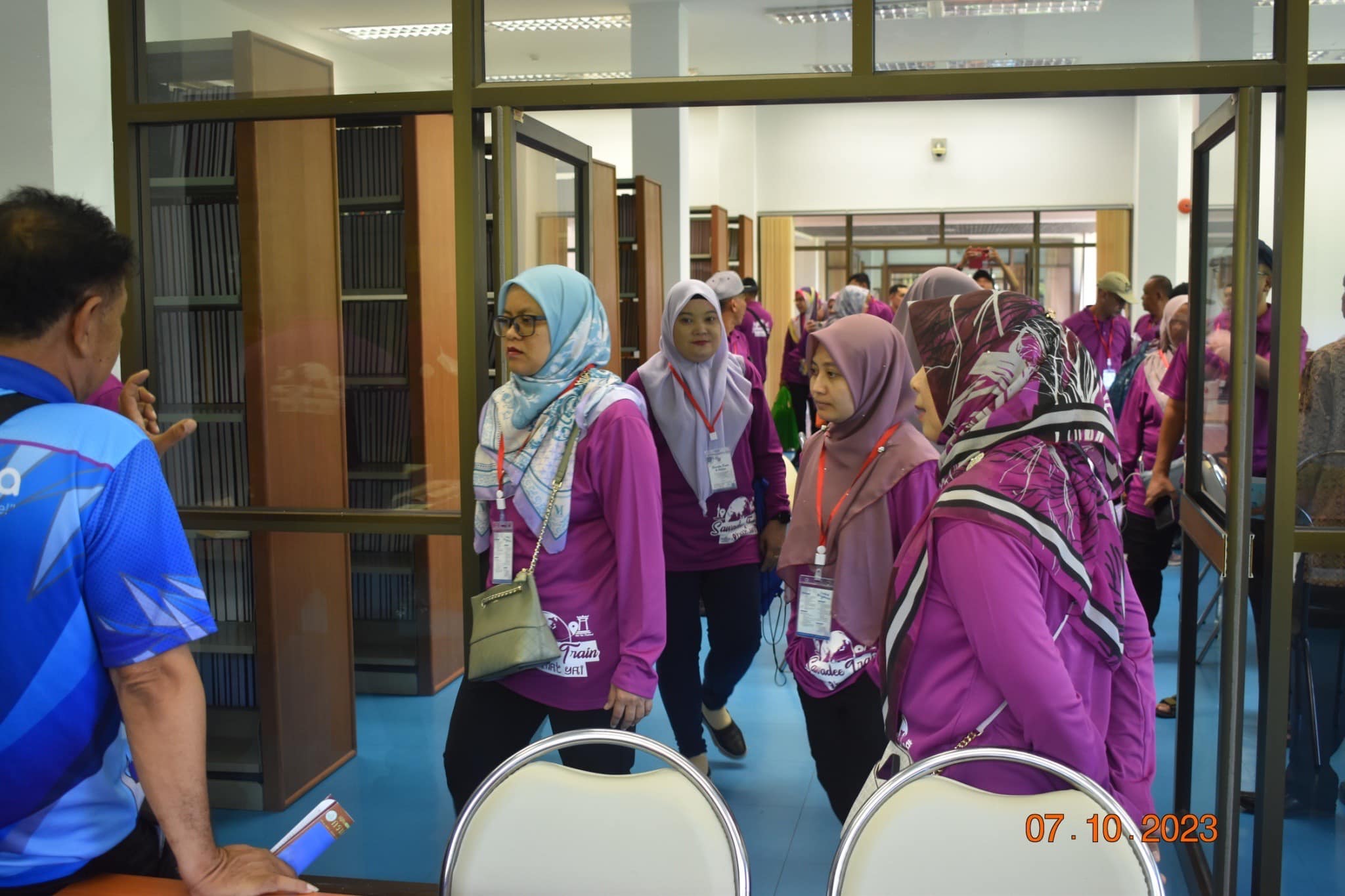 นายสุรพันธ์ สุวรรณโณ บรรณารักษ์ชำนาญการ รักษาการในตำแหน่งหัวหน้าหอสมุดแห่งชาติกาญจนาภิเษก สงขลา พร้อมบุคลลากร ให้การต้อนรับและนำชมแก่คณะผู้บริหารและบรรณารักษ์ จำนวน ๓๒ คน จาก Pahang State Library , Malaysia
