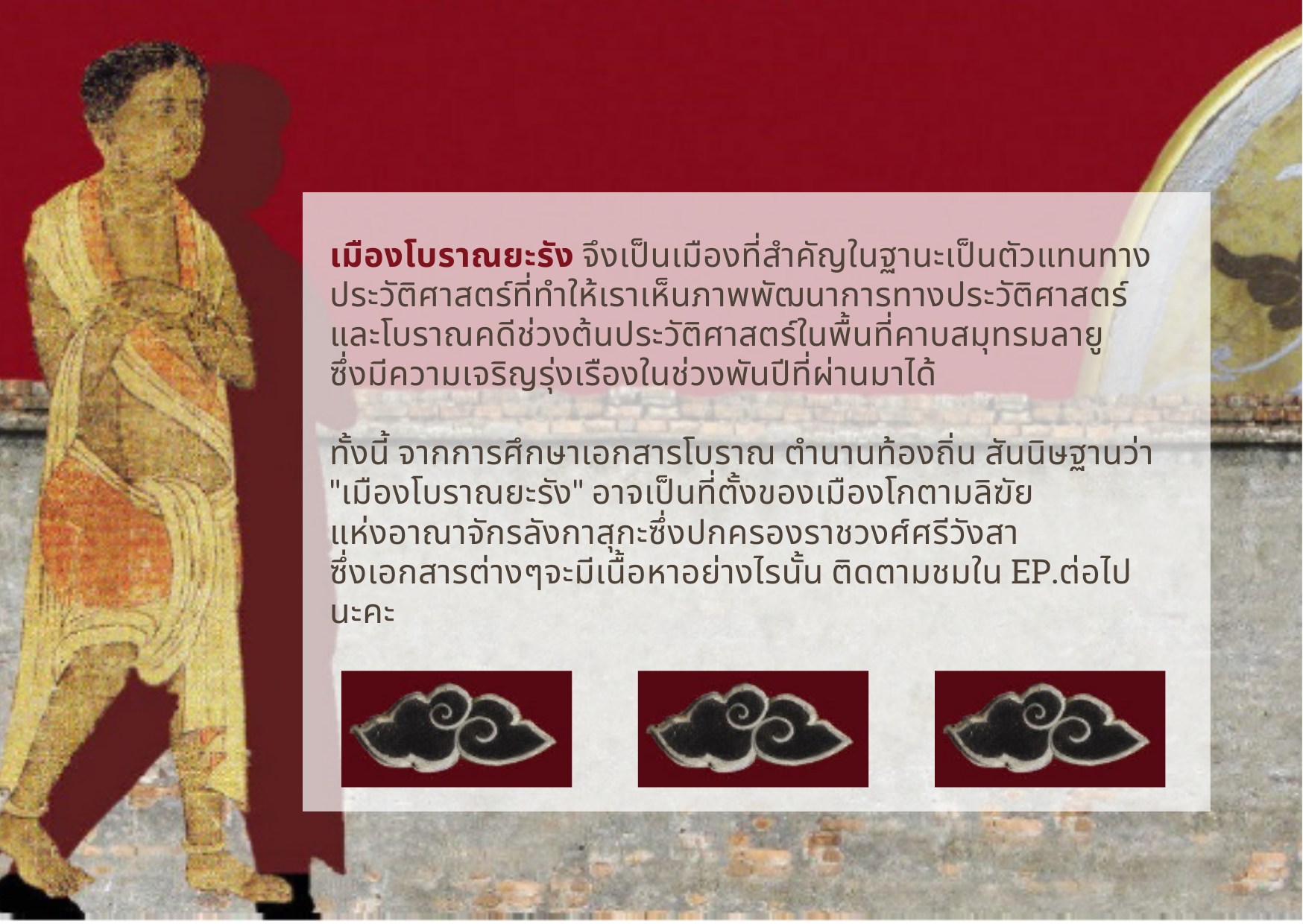 องค์ความรู้ตอนแรกที่นำเสนอในวันนี้มีชื่อว่า “ Ep.1 เมืองโบราณยะรัง : เมืองโบราณสำคัญในพื้นที่ 3 จังหวัดชายแดนใต้” ซึ่งจะเป็นการปูพื้นฐานเรื่องเมืองโบราณยะรังก่อนจะไปใน Ep ต่อไป ซึ่งเนื้อหาจะเป็นอย่างไรนั้นเชิญติดตามรับชมกันได้เลยค่ะ