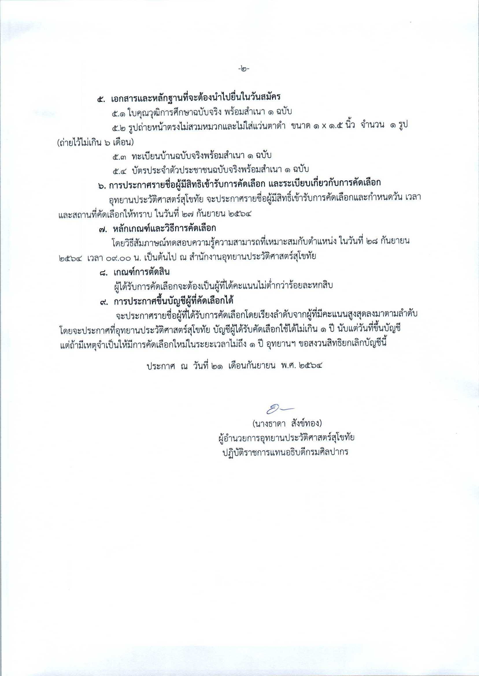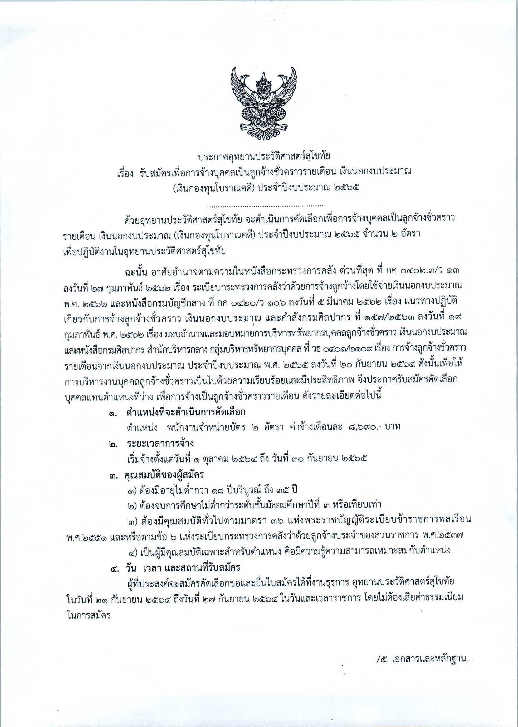ประกาศอุทยานประวัติศาสตร์สุโขทัย เรื่อง รายชื่อผู้มีสิทธิ์คัดเลือกเพื่อเป็นการจ้างเป็นลูกจ้างชั่วคราวรายเดือน เงินนอกงบประมาณ (กองทุนโบราณคดี) ประจำปีงบประมาณ ๒๕๖๕