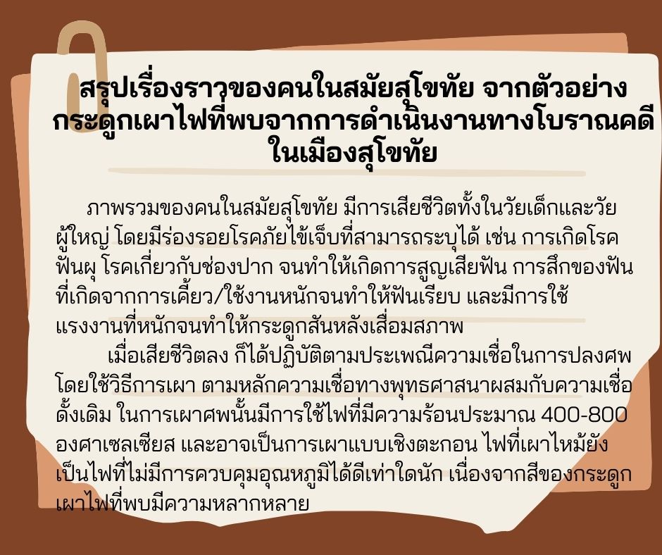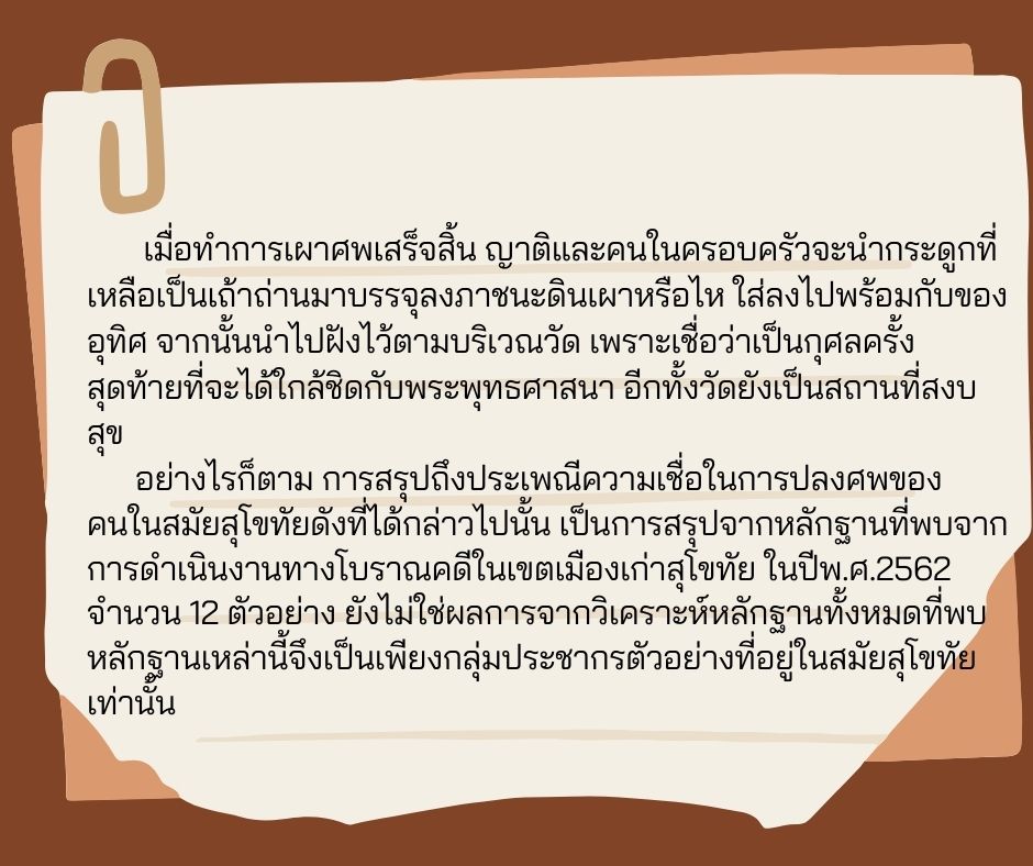 หมายเหตุ : สามารถอ่าน การปลงศพ ประเพณีและพิธีกรรมของชาวสุโขทัย