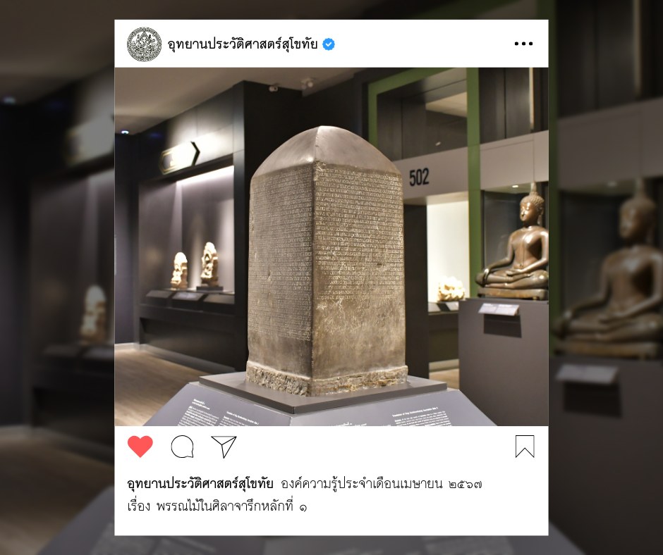 นับว่าศิลาจารึกหลักที่ ๑ เป็นหลักฐานชิ้นสำคัญที่แสดงเห็นถึงวิถีชีวิตความเป็นอยู่ของชาวสุโขทัยในอดีต โดยองค์การการศึกษาวิทยาศาสตร์ และวัฒนธรรมแห่งสหประชาชาติ (UNESCO) ได้ประกาศให้ศิลาจารึกหลักที่ ๑ เป็นมรดกความทรงจำของโลก (The Memory of the World Register) นอกจากเนื้อความที่กล่าวถึงข้างต้นแล้วยังปรากฏชื่อของพรรณไม้ในสมัยสุโขทัยอีกด้วย ดังนี้