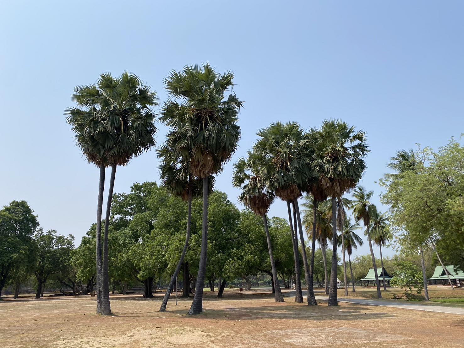 ต้นตาล ปรากฏอยู่ในด้านที่ ๓ บรรทัดที่ ๑๐ - ๑๓ ความว่า “..พ่อขุนรามคำแหงเจ้าเมืองศรีสัชนาลัยสุโขทัยนี้ ปลูกไม้ตาลนี้ ได้สิบสี่เข้า จึงให้ช่างฟันขดานหินตั้งหว่าง กลางไม้ตาลนี้ วันเดือนดับเดือนโอก แปดวัน...” และด้านที่ ๓ บรรทัด ๒๔ - ๒๕ ความว่า “…มีในถ้ำรัตนธาร ในกลางป่าตาลมีศาลาสองอัน...”