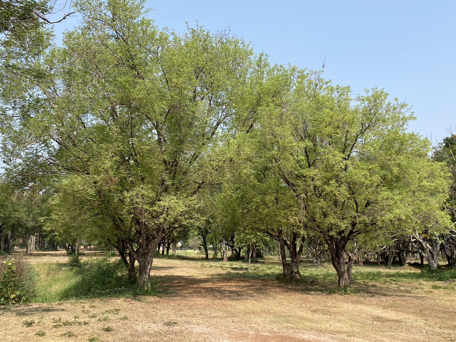 มะขาม เป็นไม้เขตร้อนมีถิ่นกำเนิดอยู่ในทวีปแอฟริกา ในแถบประเทศซูดาน ปรากฏอยู่ในด้านที่ ๒ บรรทัดที่ ๓๕ ความว่า “…มีป่าขาม ดูงามดังแกล้...” และด้านที่ ๓ บรรทัดที่ ๕ ความว่า “…มีป่าพร้าว ป่าลาง มีป่าม่วง ป่าขาม...”