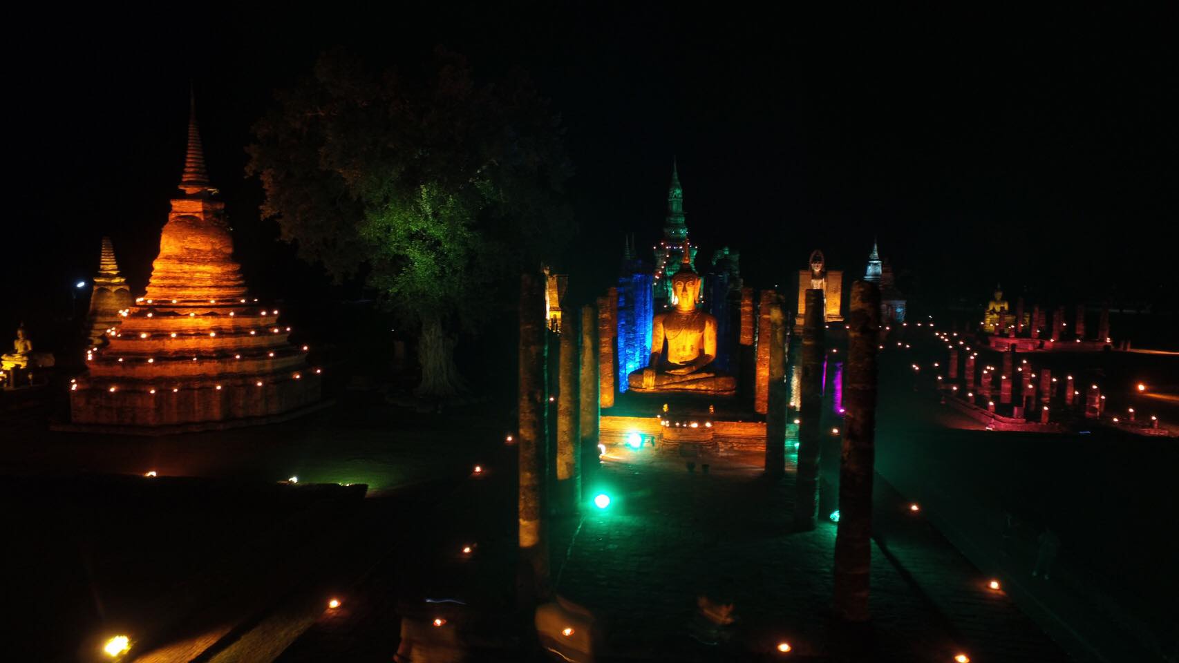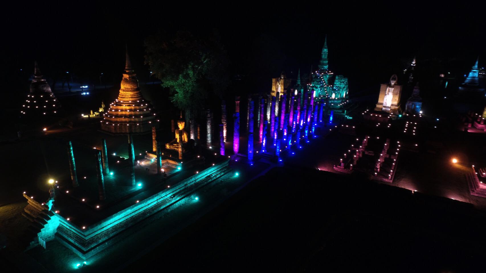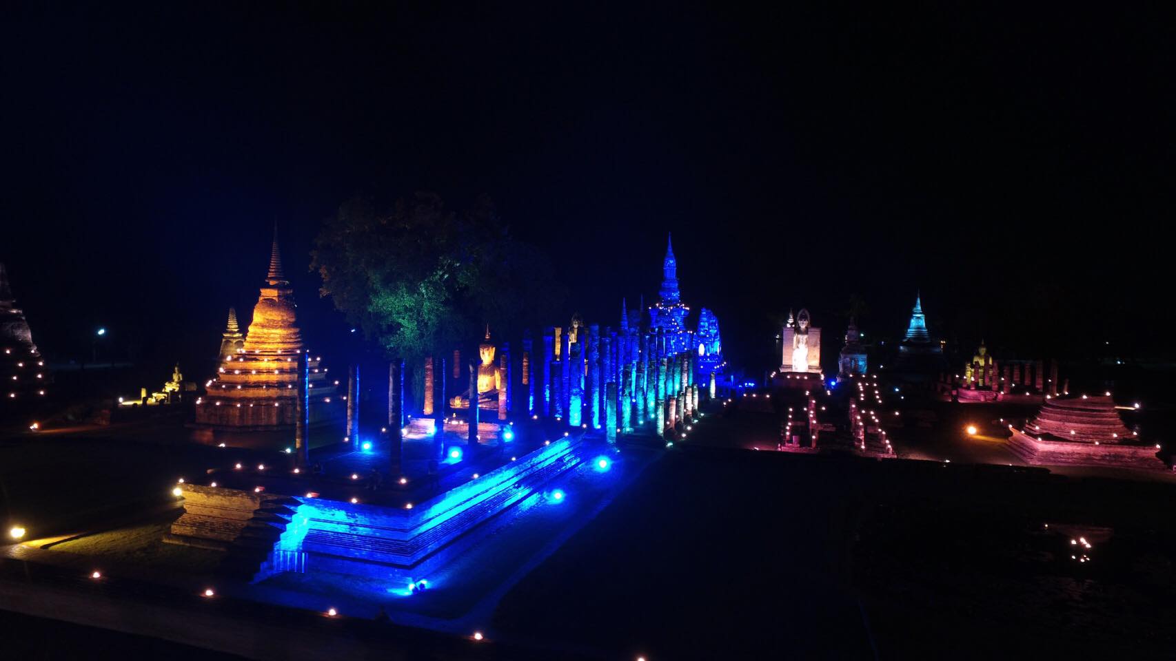 ๒. กิจกรรมชมแสงสีโบราณสถาน ยลอุทยานยามค่ำคืน ระหว่างวันที่ ๓ ธ.ค ๕๙-๓ ม.ค ๖๐ ตั้งแต่เวลา ๑๘.๐๐-๒๑.๐๐ น. ณ วัดมหาธาตุ อุทยานประวัติศาสตร์สุโขทัย ชมฟรี
