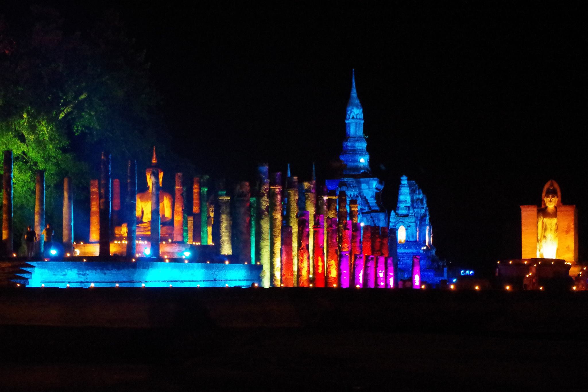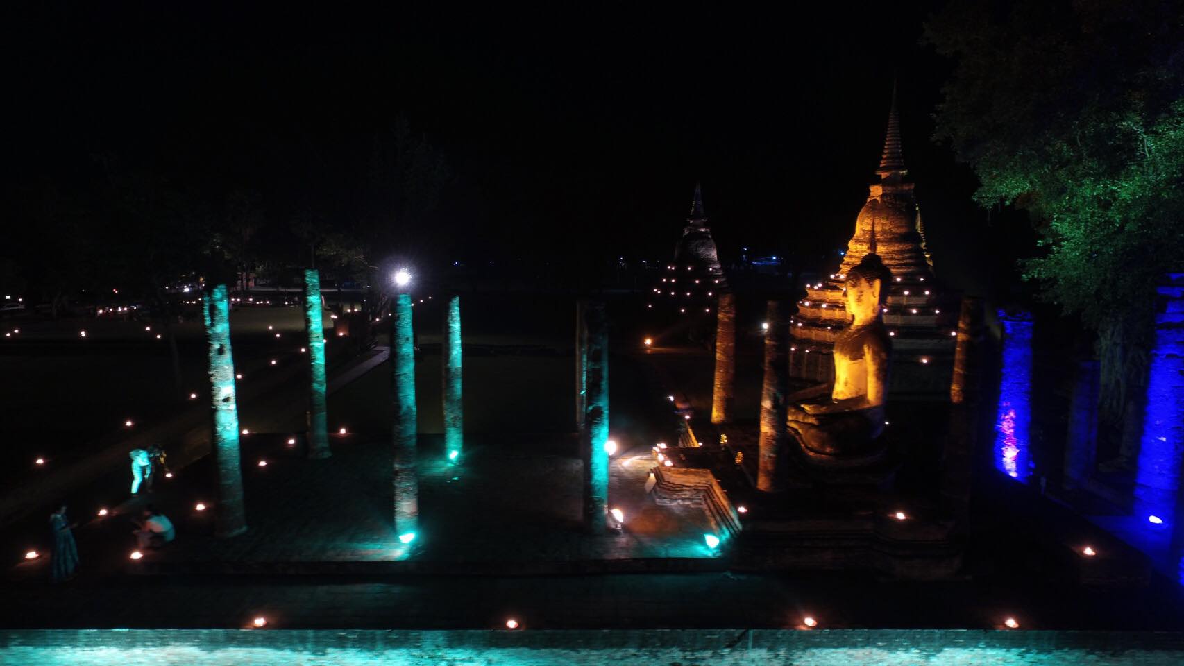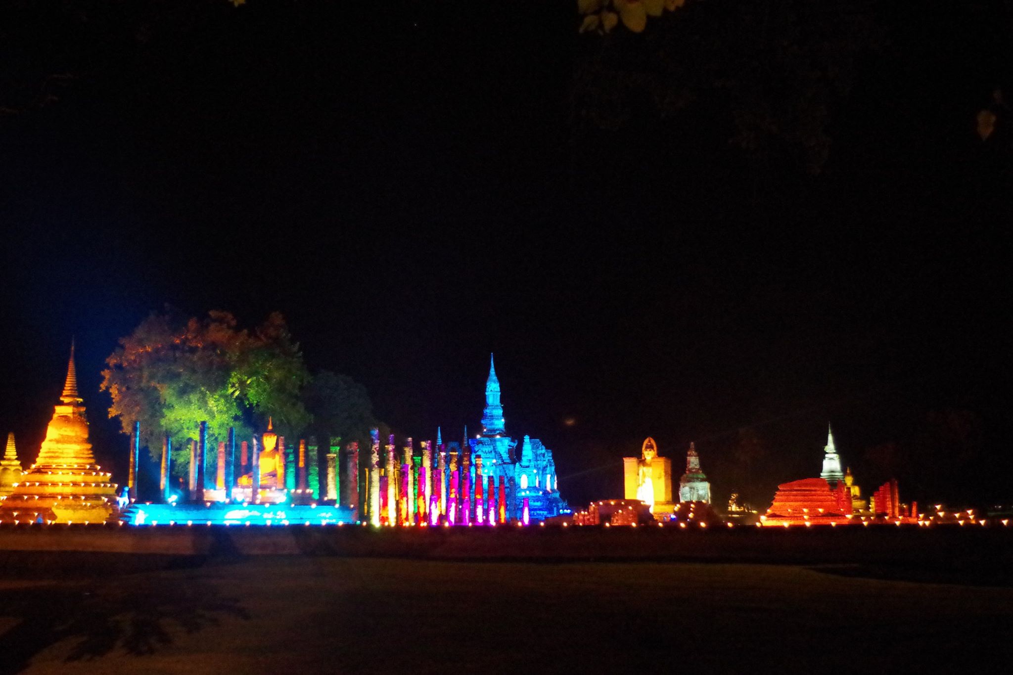 ๒. กิจกรรมชมแสงสีโบราณสถาน ยลอุทยานยามค่ำคืน ระหว่างวันที่ ๓ ธ.ค ๕๙-๓ ม.ค ๖๐ ตั้งแต่เวลา ๑๘.๐๐-๒๑.๐๐ น. ณ วัดมหาธาตุ อุทยานประวัติศาสตร์สุโขทัย ชมฟรี