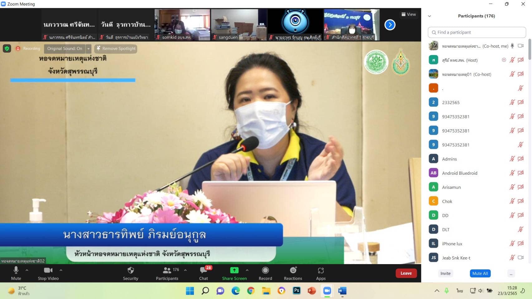 หอจดหมายเหตุแห่งชาติ จังหวัดสุพรรณบุรี จัดโครงการประชุมสัมมนาออนไลน์ เรื่อง การทำลายและส่งมอบเอกสารราชการ ผ่านโปรแกรม Zoom Meeting