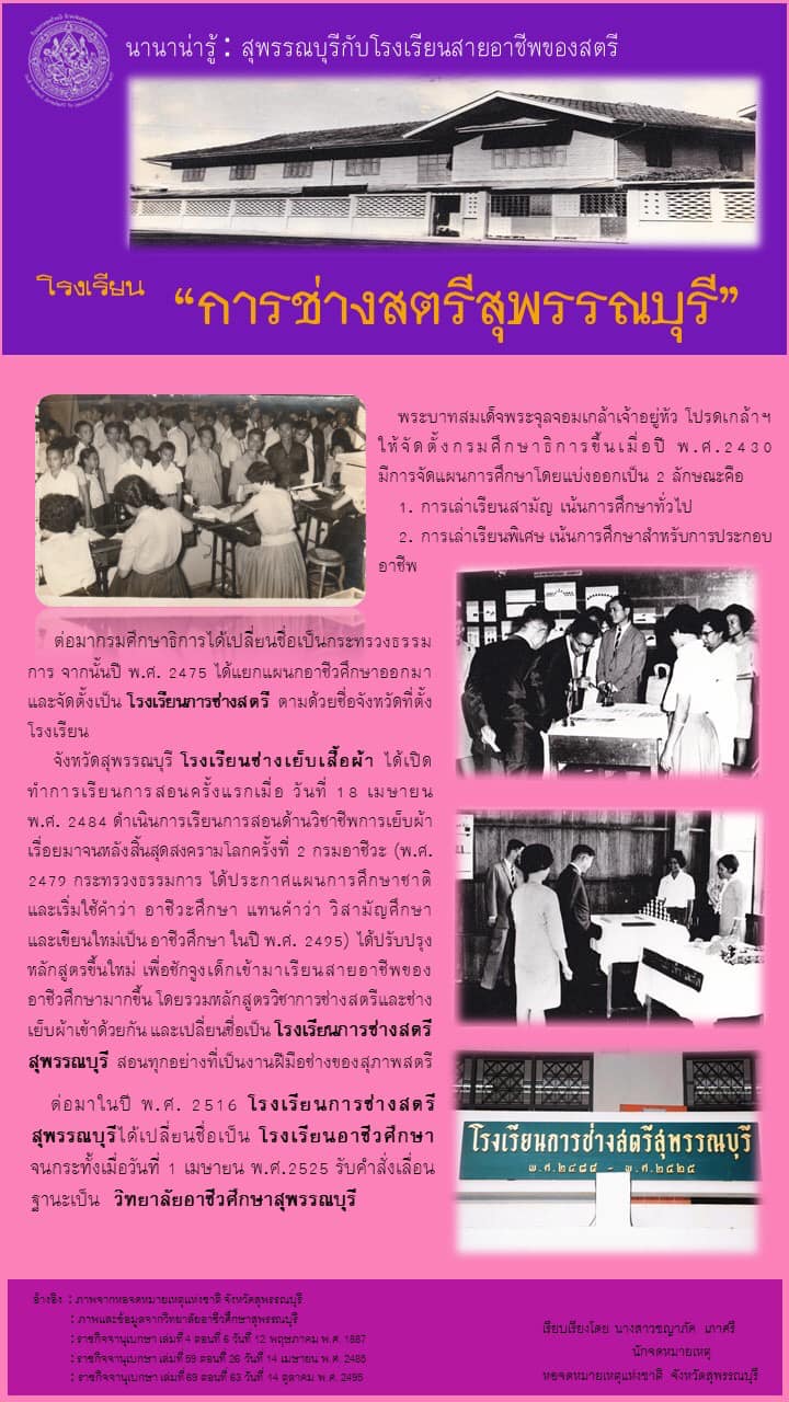 สุพรรณบุรีกับโรงเรียนสายอาชีพของสตรี โรงเรียนการช่างสตรีสุพรรณบุรี