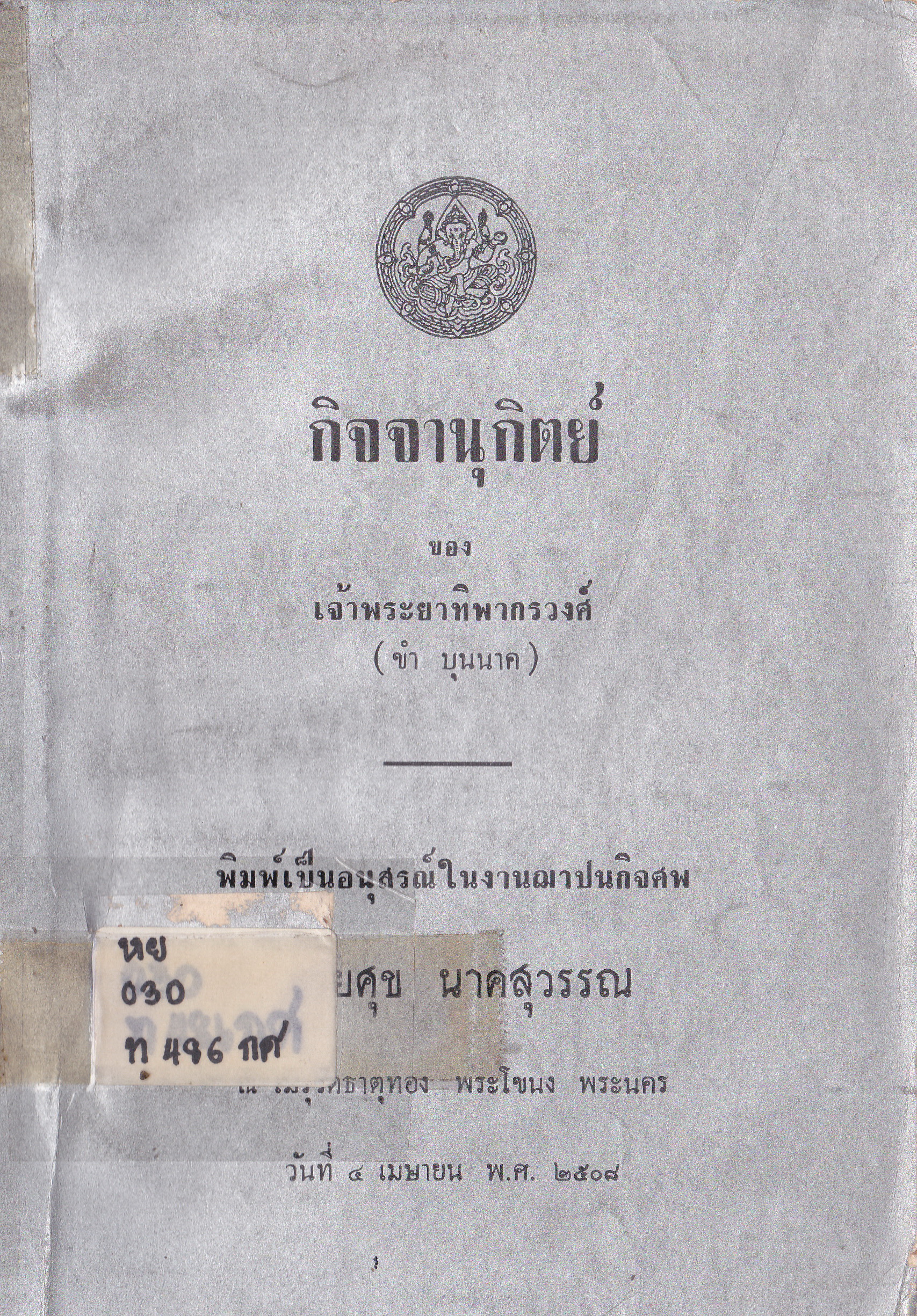 วารสารสมาคมสุพรรณพระนคร พ.ศ.2503