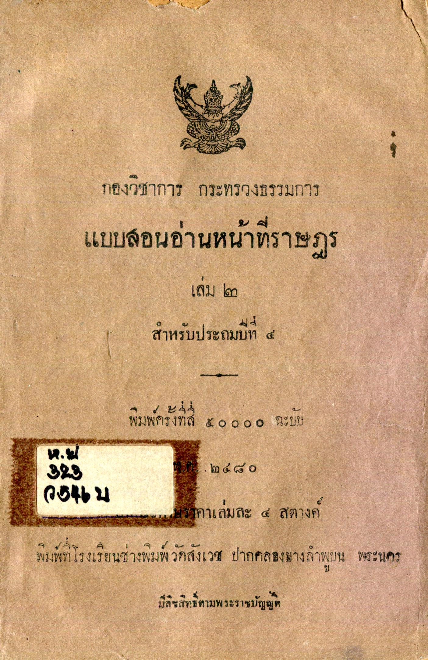 แบบสอนอ่านหน้าที่ราษฎร เล่ม 2 สำหรับประถมปีที่ 4
