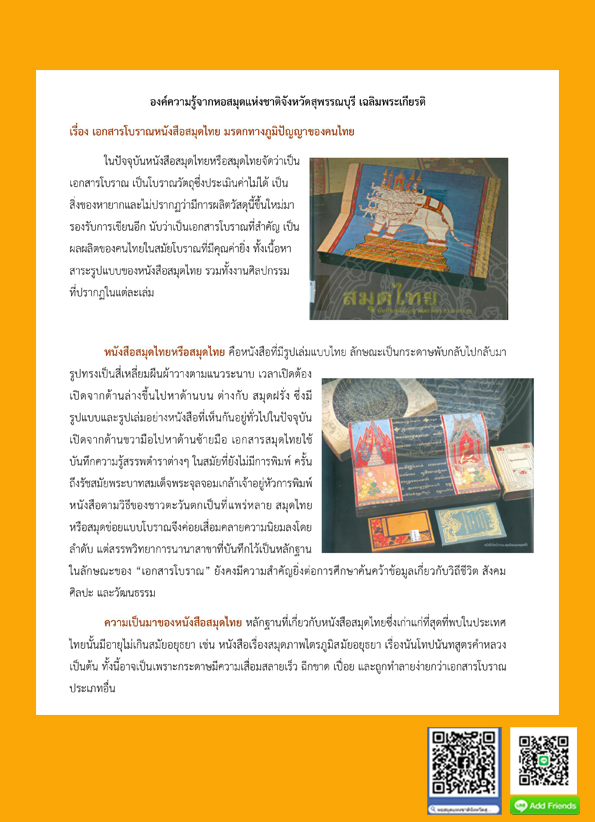 องค์ความรู้ เอกสารโบราณหนังสือสมุดไทย มรดกทางภูมิปัญญาของคนไทย
