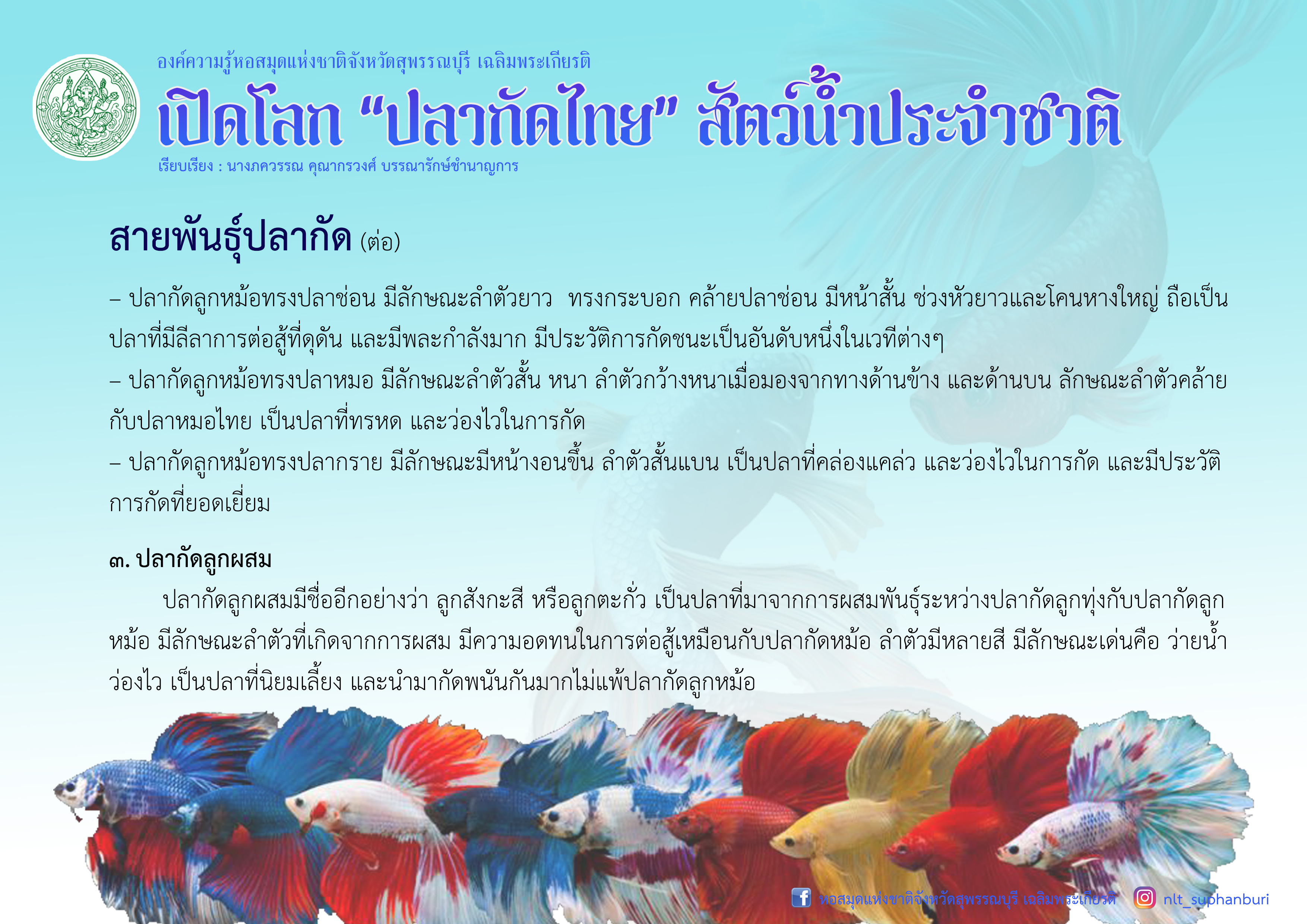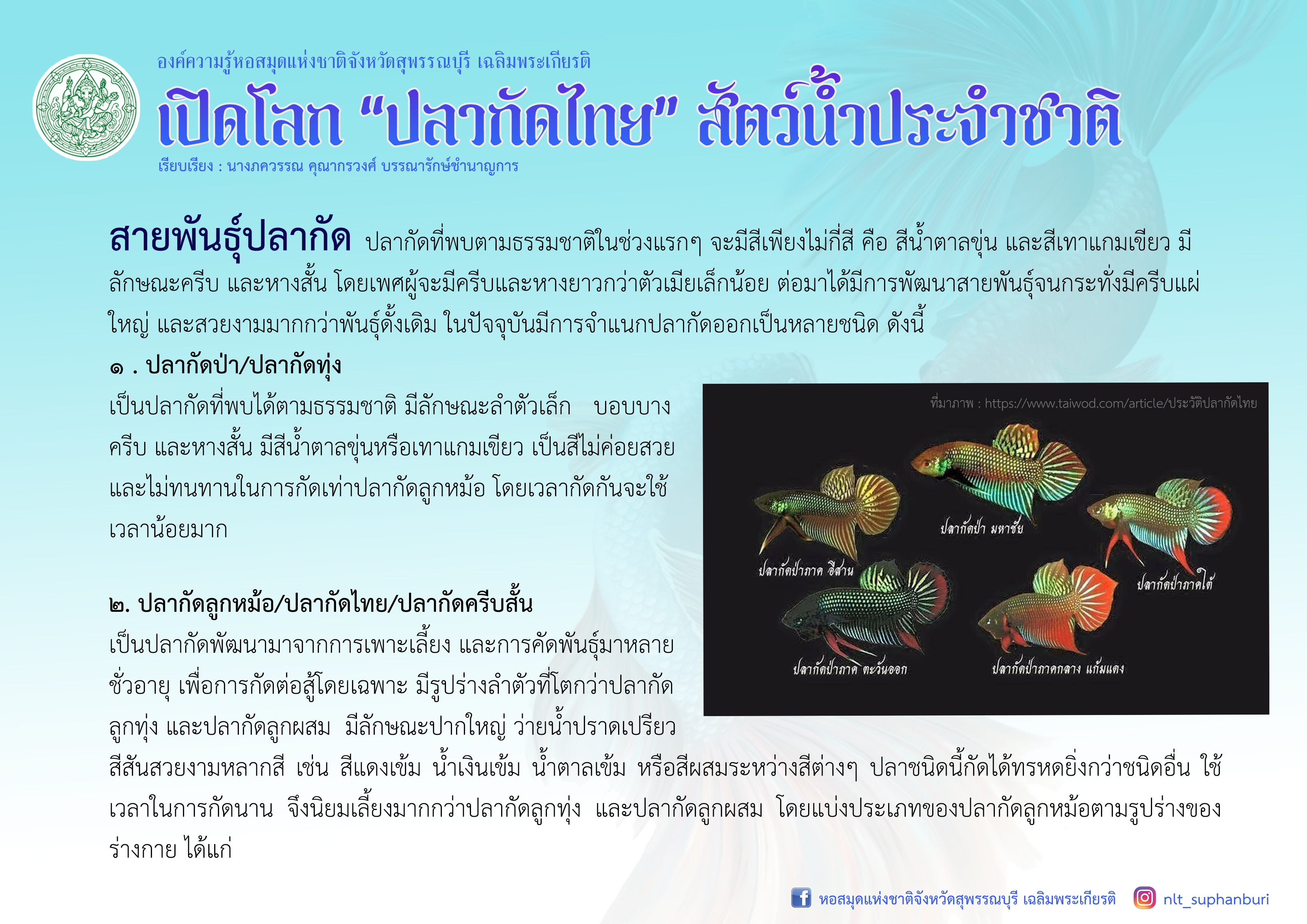 องค์ความรู้ เปิดโลก ปลากัดไทย สัตว์น้ำประจำชาติ
