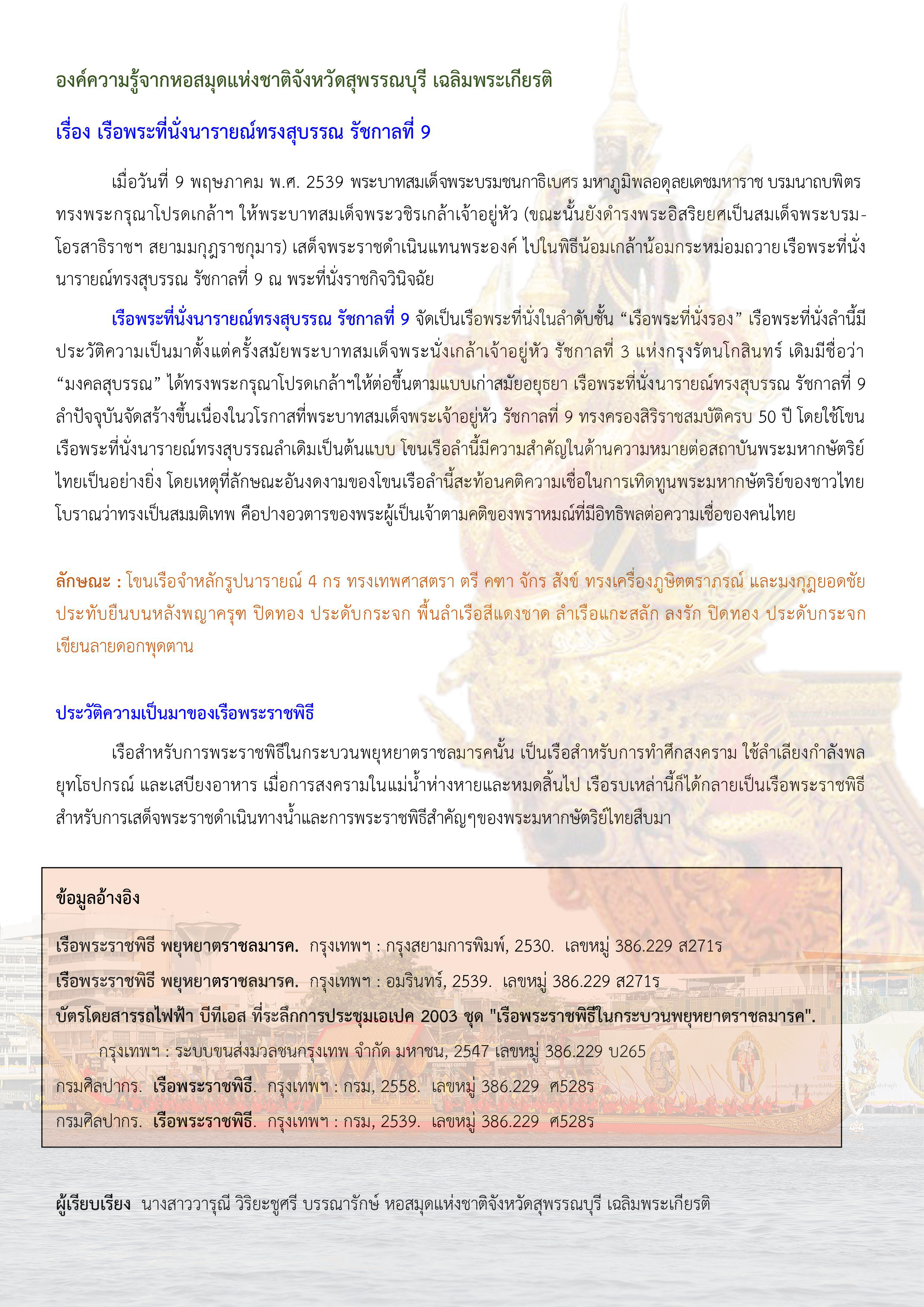 องค์ความรู้เรือพระที่นั่งนารายณ์ทรงสุบรรณ