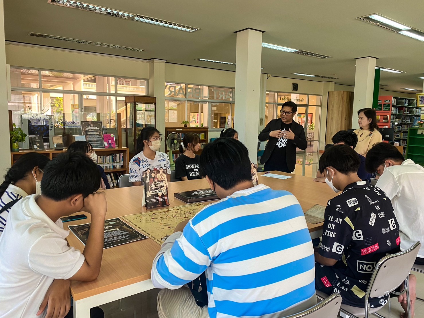 วันที่ 30 มีนาคม 2566 นางทัศนีย์ เทพไชย ผู้อำนวยการหอสมุดแห่งชาติจังหวัดสุพรรณบุรี เฉลิมพระเกียรติ กล่าวต้อนรับผู้ช่วยศาสตราจารย์ อติเทพ แจ้ดนาลาว คณะมัณฑนศิลป์ มหาวิทยาลัยศิลปากร ( Atithep Chaetnalao ) และน้องๆนักเรียนที่มาร่วมทดสอบเล่นบอร์ดเกมในโครงการวิจัย เรื่อง : นวัตกรรมการสืบสานตำนานเสือเมืองสุพรรณบุรีโดยใช้บอร์ดเกม (Board Game Innovation for preserving and passing on the Legend of Muang Suphan Thief) จากกองทุนวิจัย นวัตกรรมและการสร้างสรรค์ คณะมัณฑนศิลป์ มหาวิทยาลัยศิลปากร ณ ห้องบริการ 1 หอสมุดแห่งชาติจังหวัดสุพรรณบุรี เฉลิมพระเกียรติ