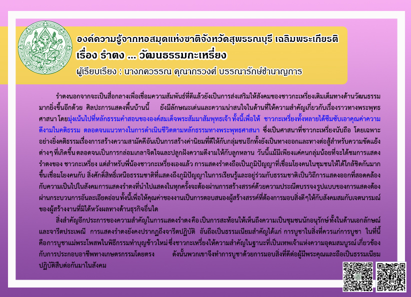 องค์ความรู้ รำตง วัฒนธรรมกะเหรี่ยง