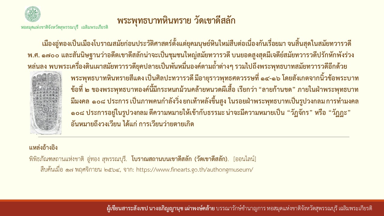 องค์ความรู้สุพรรณบุรี เรื่อง รอยพระพุทธบาท วัดเขาดีสลัก จังหวัดสุพรรณบุรี