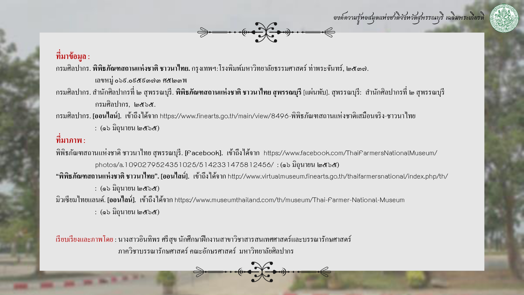 องค์ความรู้ พิพิธภัณฑสถานแห่งชาติชาวนาไทย