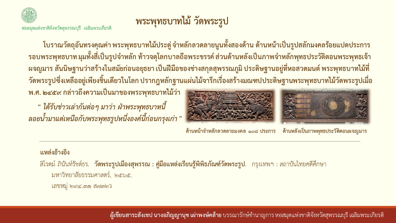 องค์ความรู้สุพรรณบุรี เรื่อง พระพุทธบาทไม้วัดพระรูป
